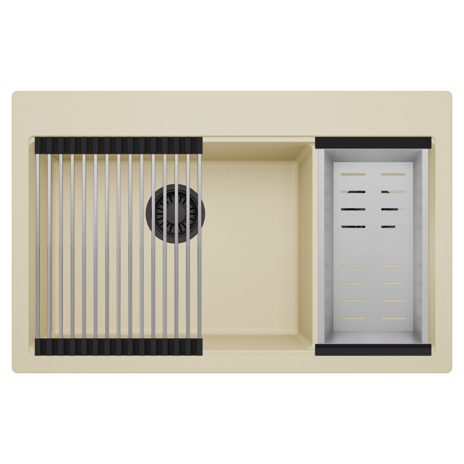 HD Aspen Beige 78 Kétmedencés mosogatótálca szett, csepegtetőráccsal és kosárral, soft bézs