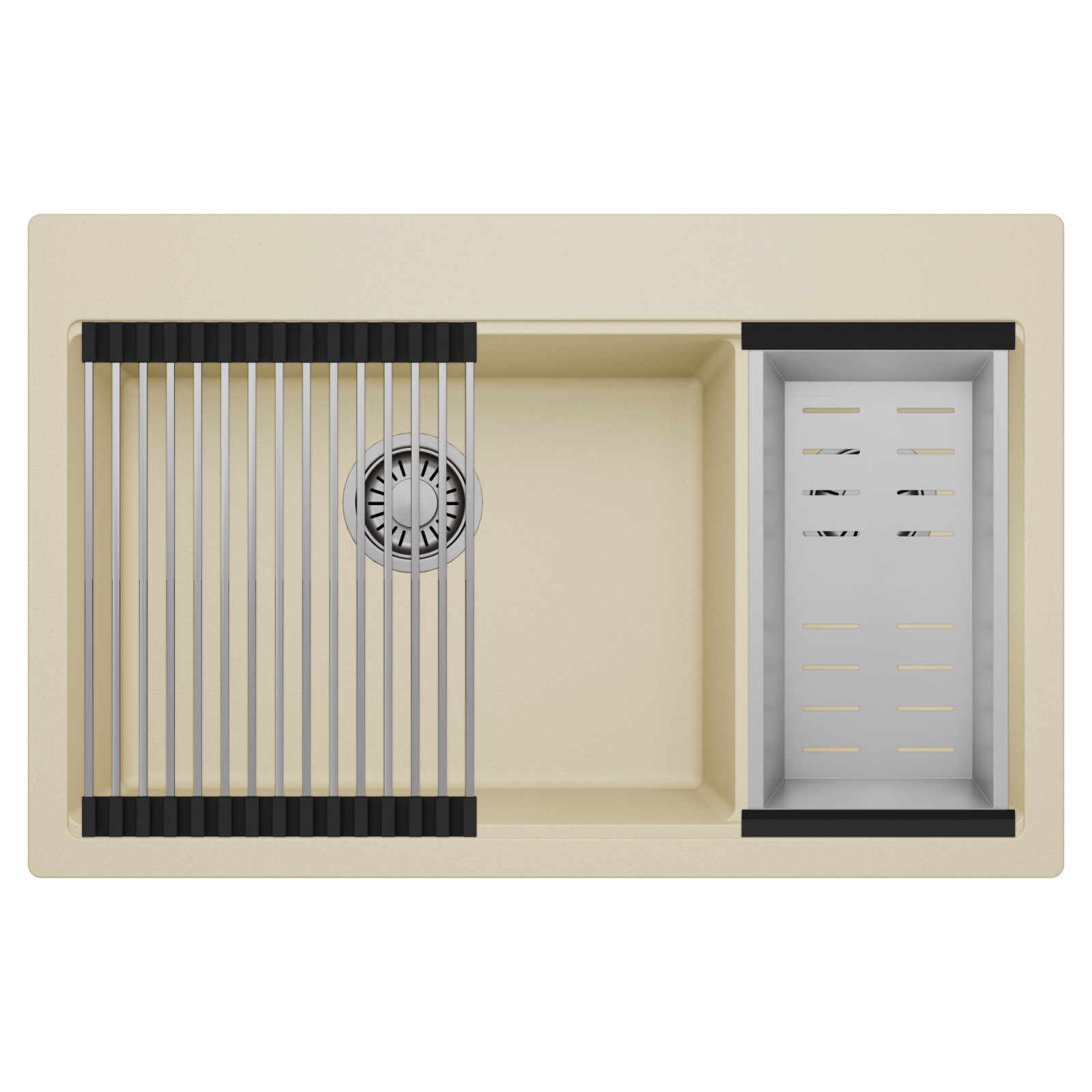HD Aspen Beige 78 Kétmedencés mosogatótálca szett, csepegtetőráccsal és kosárral, soft bézs