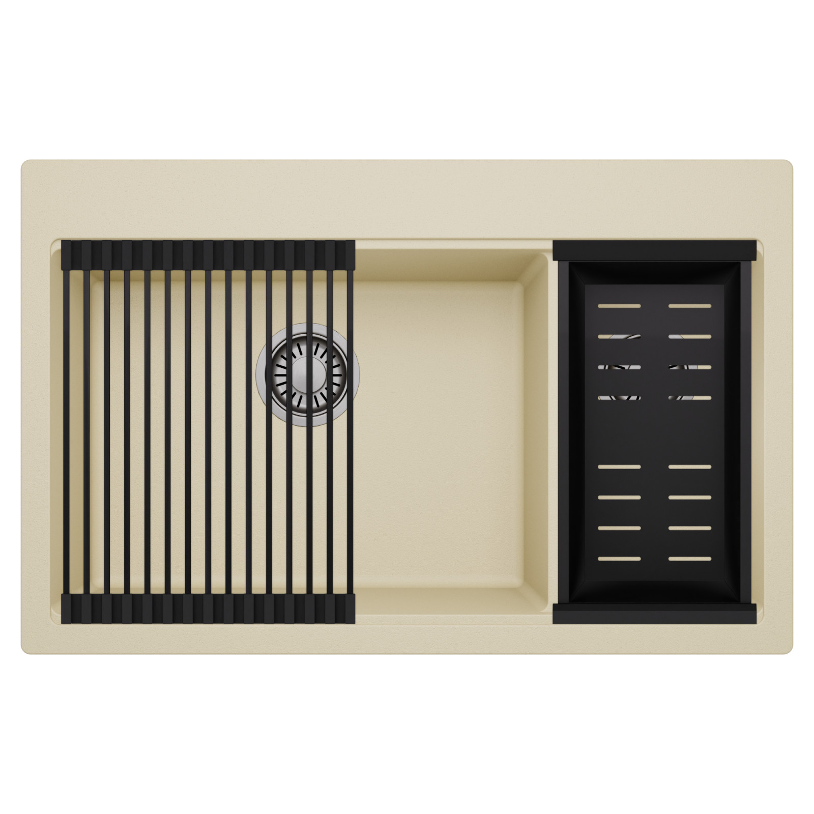 HD Aspen Beige 78 Kétmedencés mosogatótálca szett, csepegtetőráccsal és kosárral, soft bézs