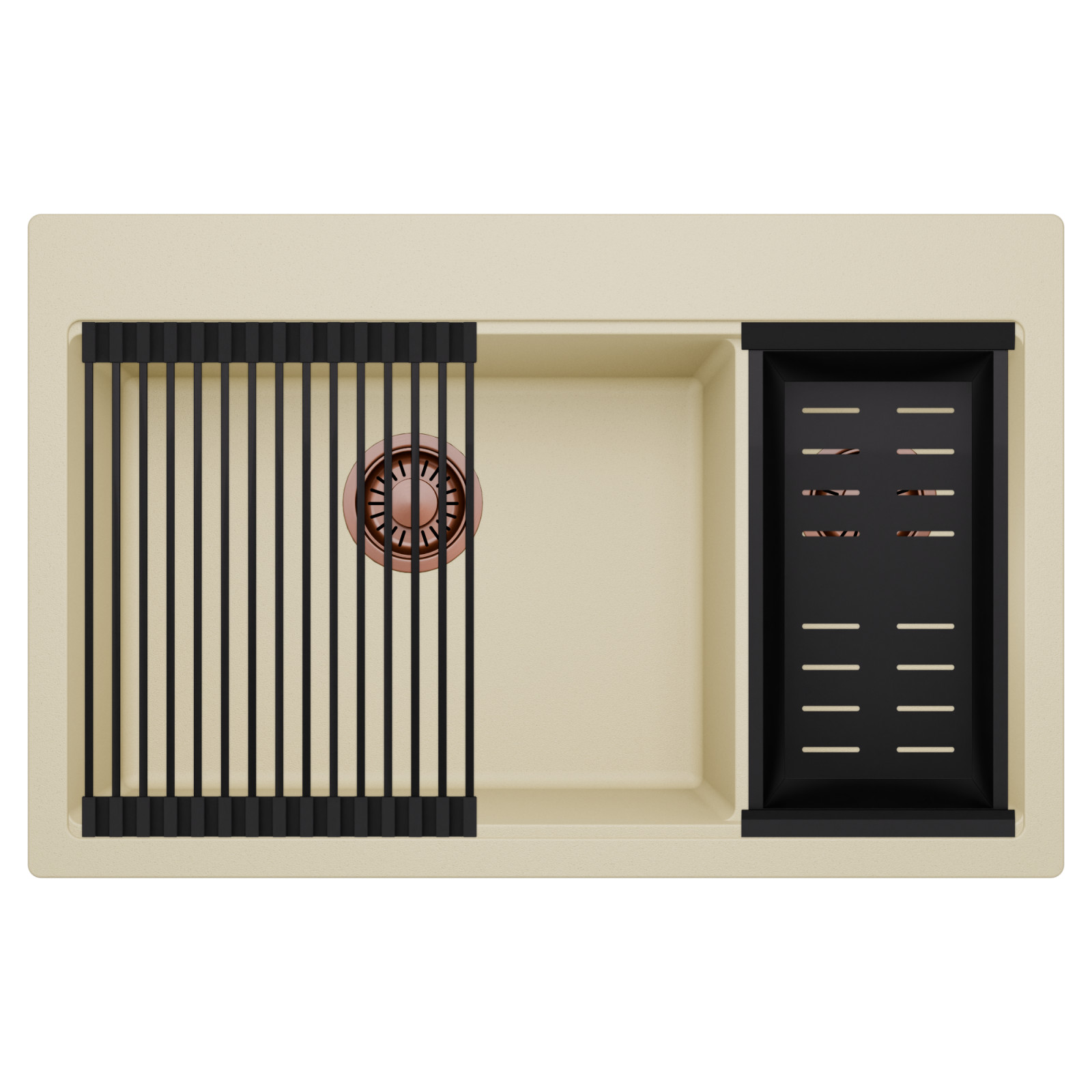 HD Aspen Beige 78 Kétmedencés mosogatótálca szett, csepegtetőráccsal és kosárral, soft bézs
