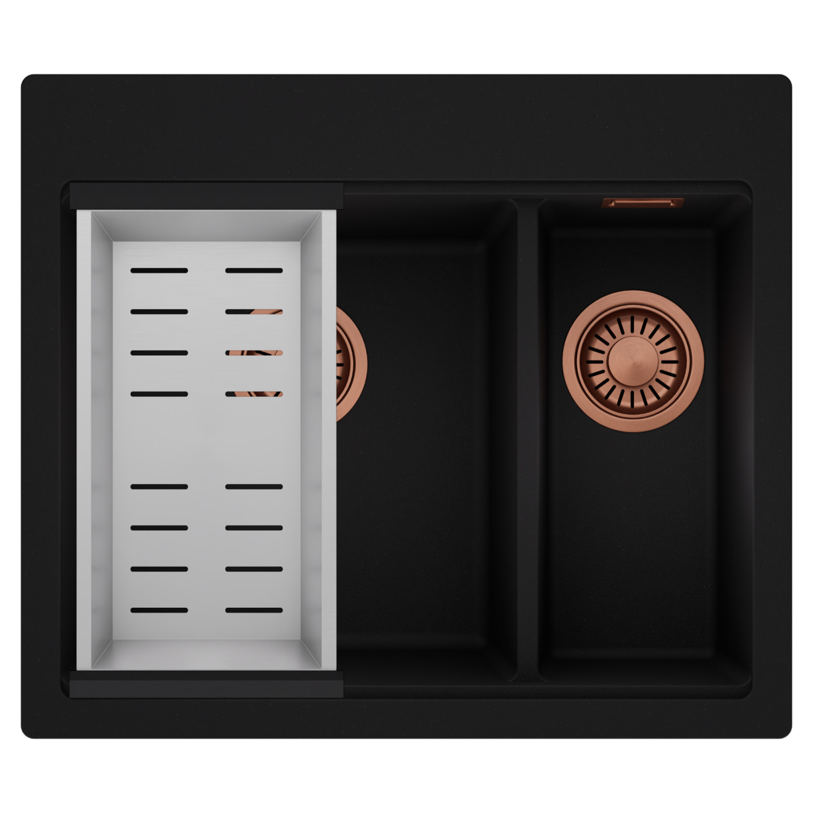 HD Aspen 58 Kétmedencés mosogatótálca szett, csepegtetőkosárral, matt fekete