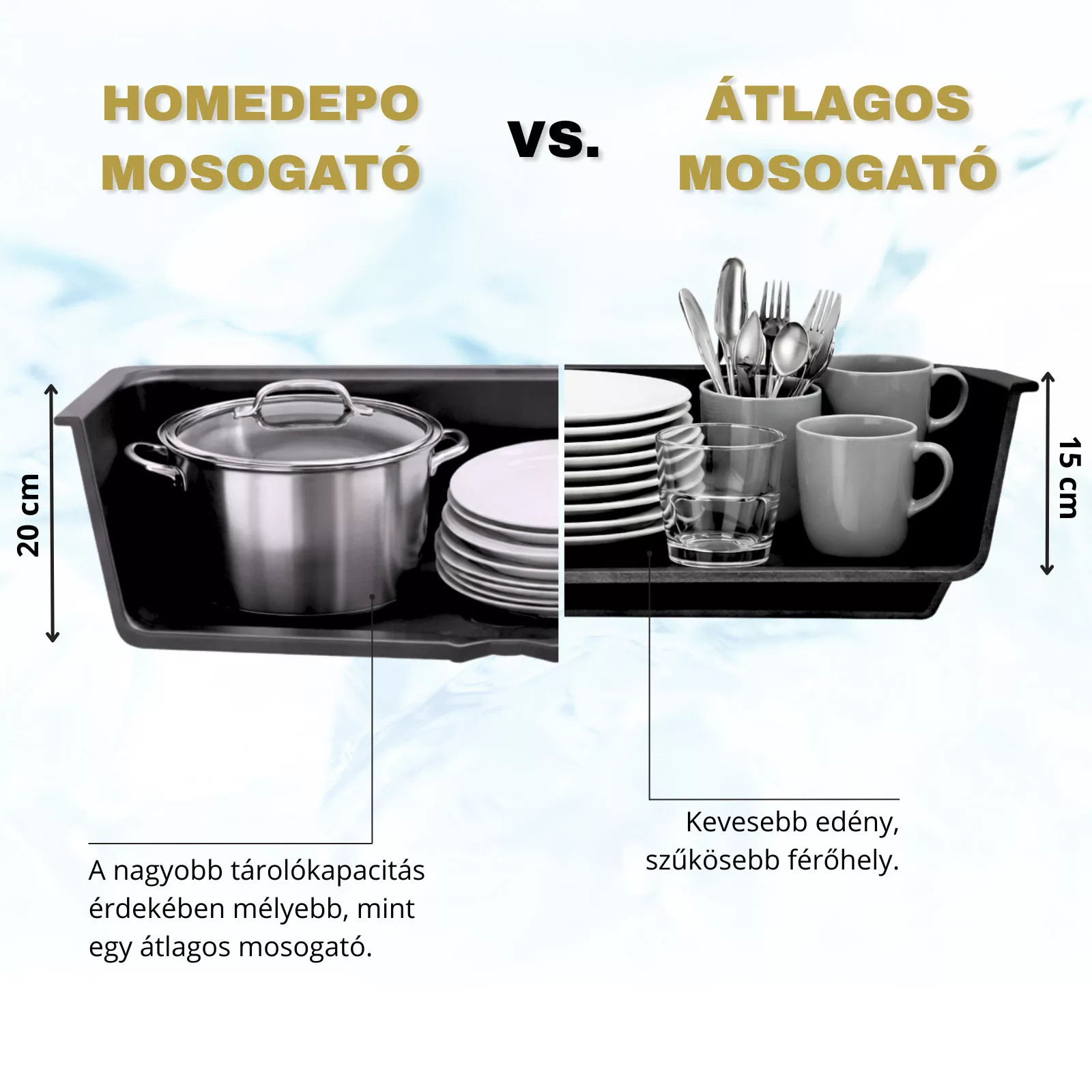 Saját márkás termékeink kialakítása során figyelembe vettük az emlúlt évek fogasztói igényeit, ezek alapján alkottuk meg a magas elvárásoknak megfelelő mosogatótálcánkat.