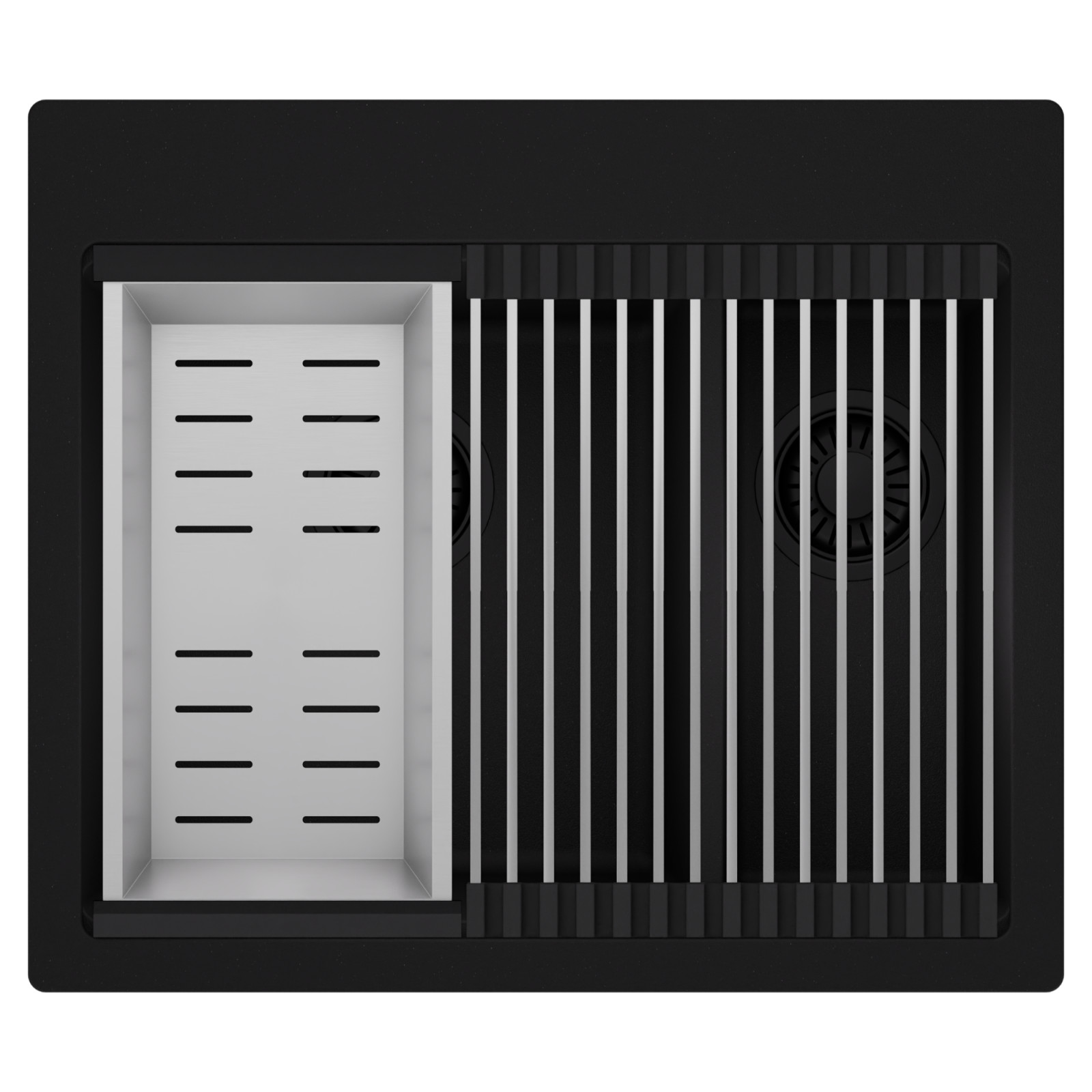 HD Aspen 58 Kétmedencés mosogatótálca szett, csepegtetőráccsal és kosárral, matt fekete