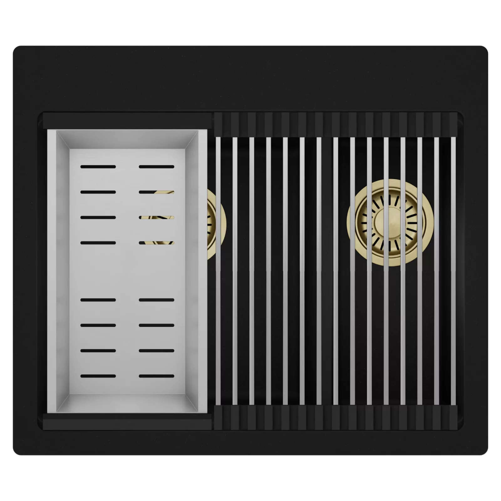 HD Aspen 58 Kétmedencés mosogatótálca szett, csepegtetőráccsal és kosárral, matt fekete