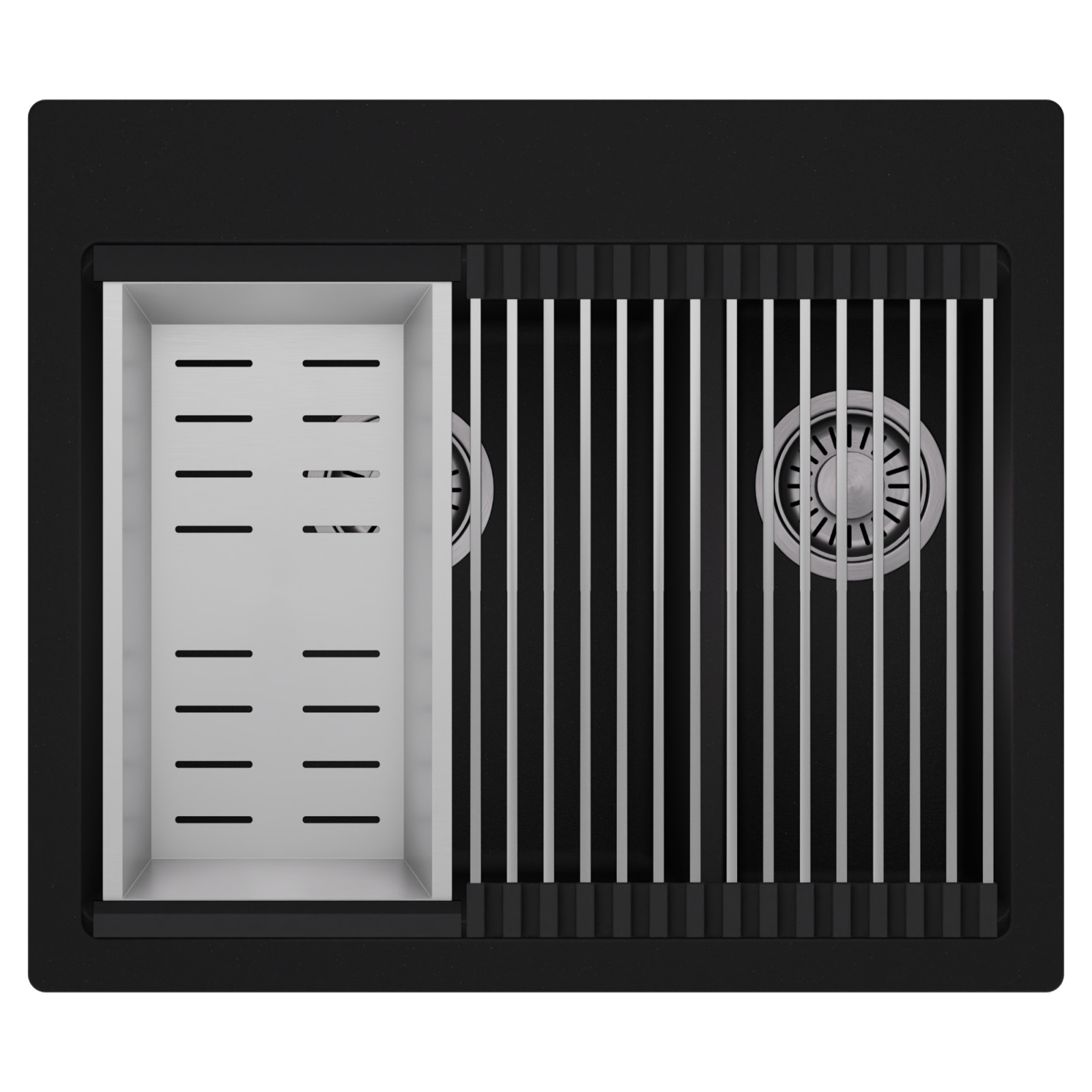 HD Aspen 58 Kétmedencés mosogatótálca szett, csepegtetőráccsal és kosárral, matt fekete