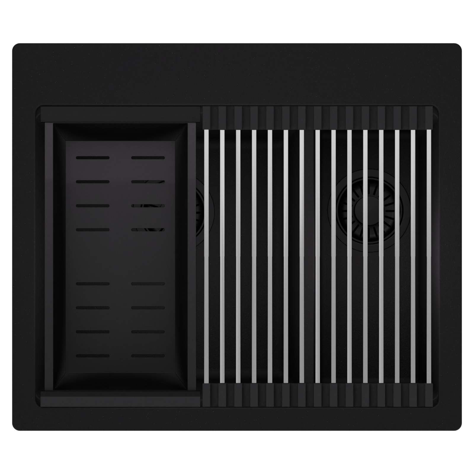 HD Aspen 58 Kétmedencés mosogatótálca szett, csepegtetőráccsal és kosárral, matt fekete