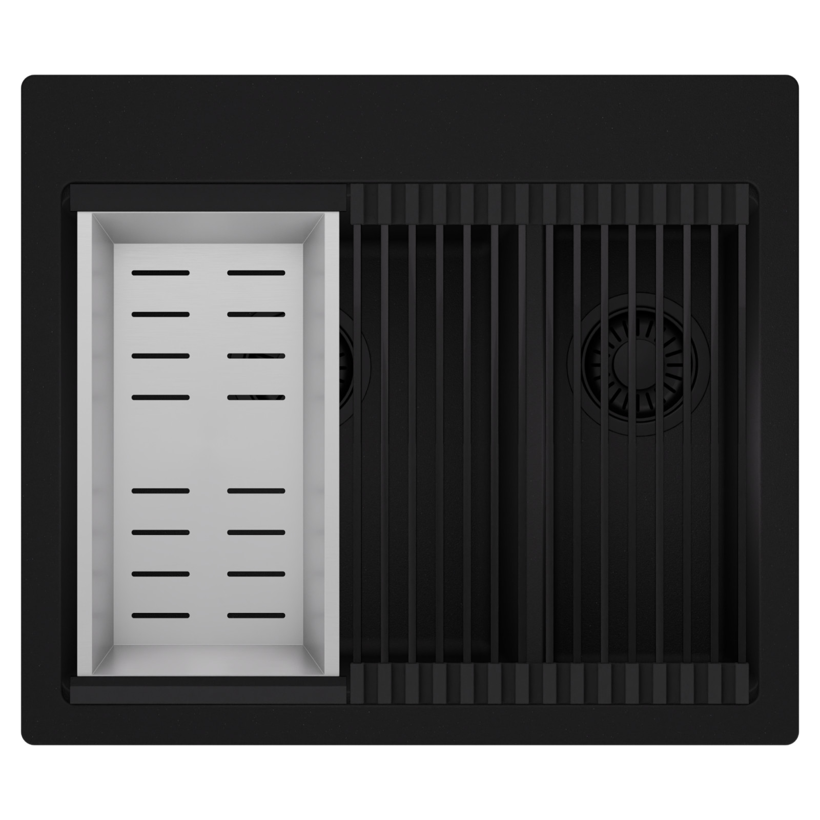HD Aspen 58 Kétmedencés mosogatótálca szett, csepegtetőráccsal és kosárral, matt fekete