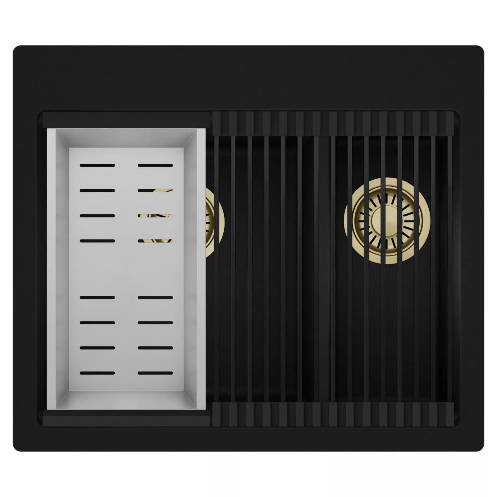HD Aspen 58 Kétmedencés mosogatótálca szett, csepegtetőráccsal és kosárral, matt fekete