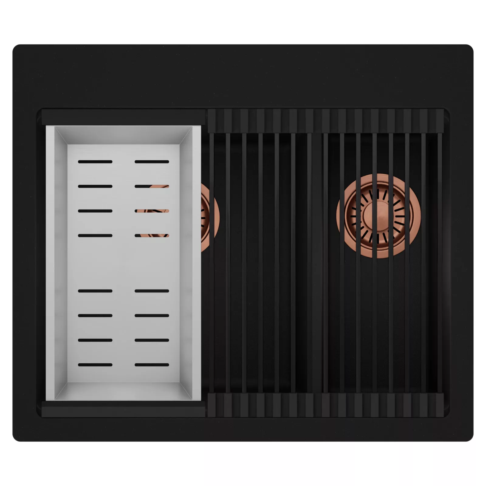 HD Aspen 58 Kétmedencés mosogatótálca szett, csepegtetőráccsal és kosárral, matt fekete