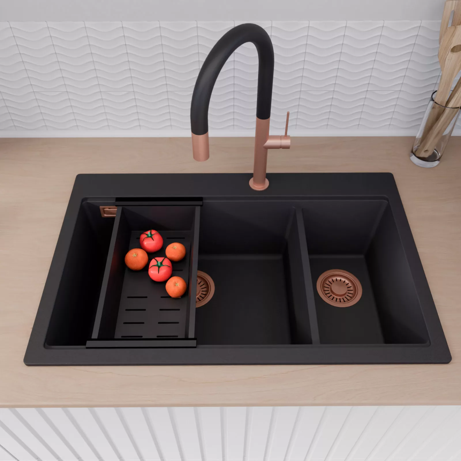HD Aspen 78 Kétmedencés mosogatótálca szett, csepegtetőráccsal és kosárral, matt fekete