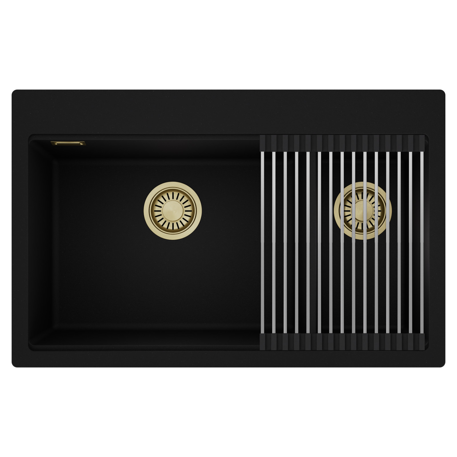 HD Aspen 78 Kétmedencés mosogatótálca szett, csepegtetőráccsal, matt fekete