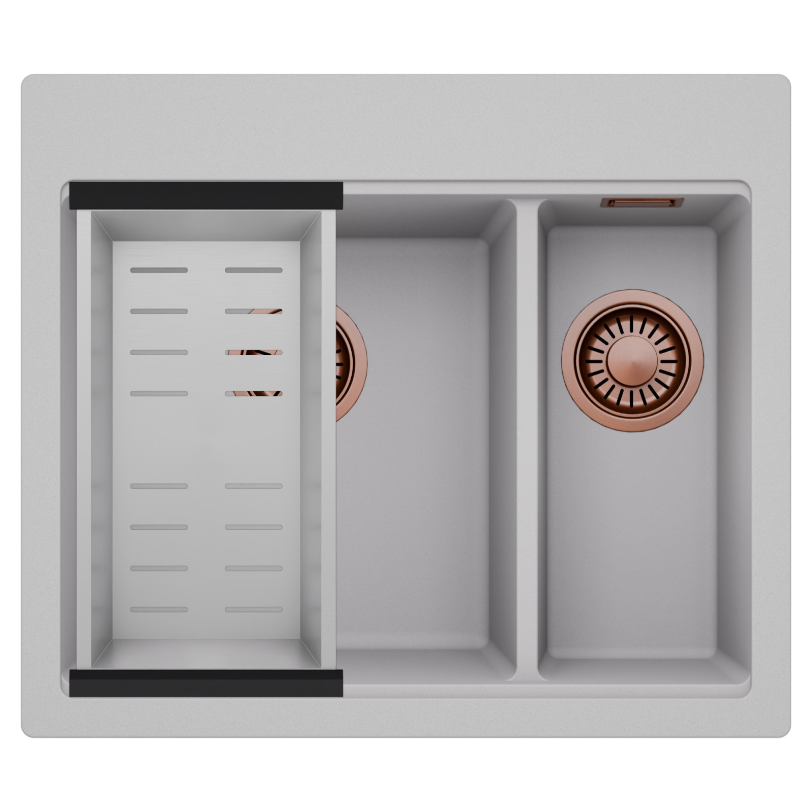 HD Aspen Grey 58 Kétmedencés mosogatótálca szett, csepegtetőkosárral, alpesi szürke