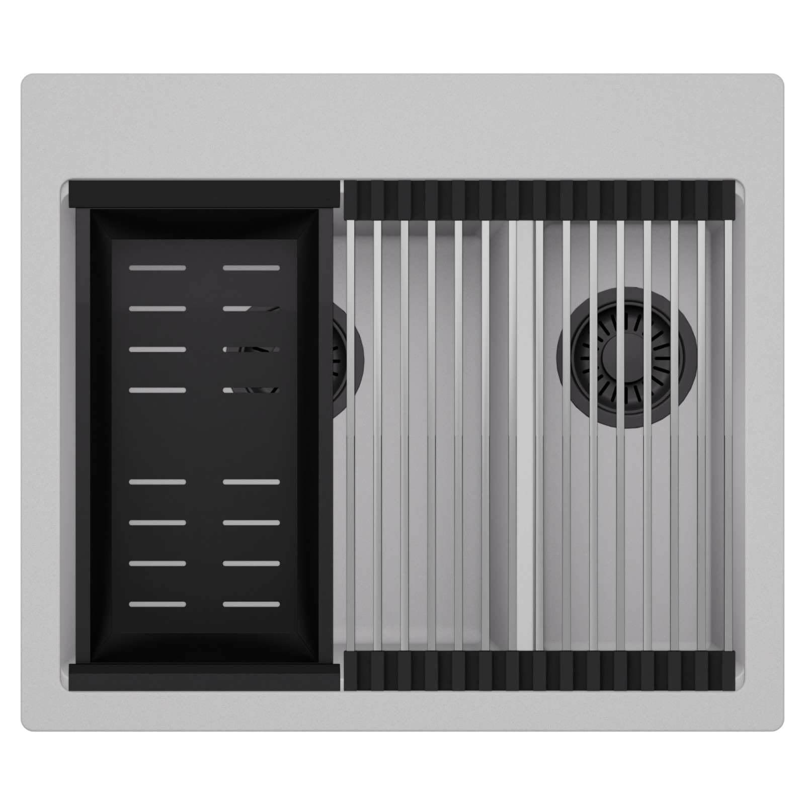 HD Aspen Grey 58 Kétmedencés mosogatótálca szett, csepegtetőráccsal és kosárral, alpesi szürke