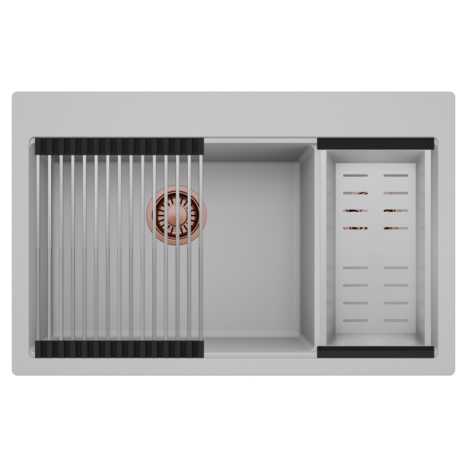 Mosogatónk magas természetes kőőrlemény-tartalmú gránit kompozitból készül, amely rendkívüli stabilitást és tartósságot biztosít. Az anyag ellenáll a magas hőmérsékletnek, a hirtelen hőingadozásoknak, valamint az ütéseknek és karcolásoknak is. Sima, zárt felülete könnyen tisztán tartható, ellenáll a foltosodásnak és az elszíneződéseknek, így hosszú éveken át megőrzi esztétikus megjelenését. Meggyőződésünk, hogy ezzel a gránit mosogatóval a mindennapi konyhai teendők kényelmesebbé és élvezetesebbé válnak.