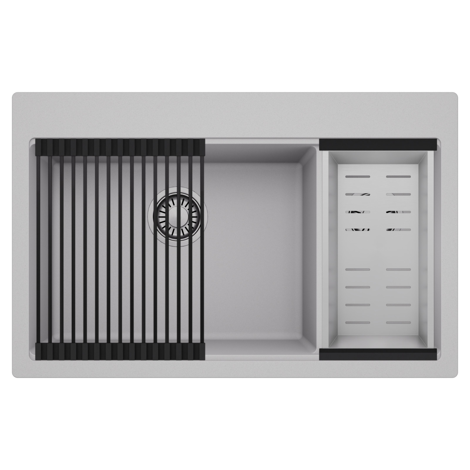 HD Aspen Grey 78 Kétmedencés mosogatótálca szett, csepegtetőráccsal és kosárral, alpesi szürke
