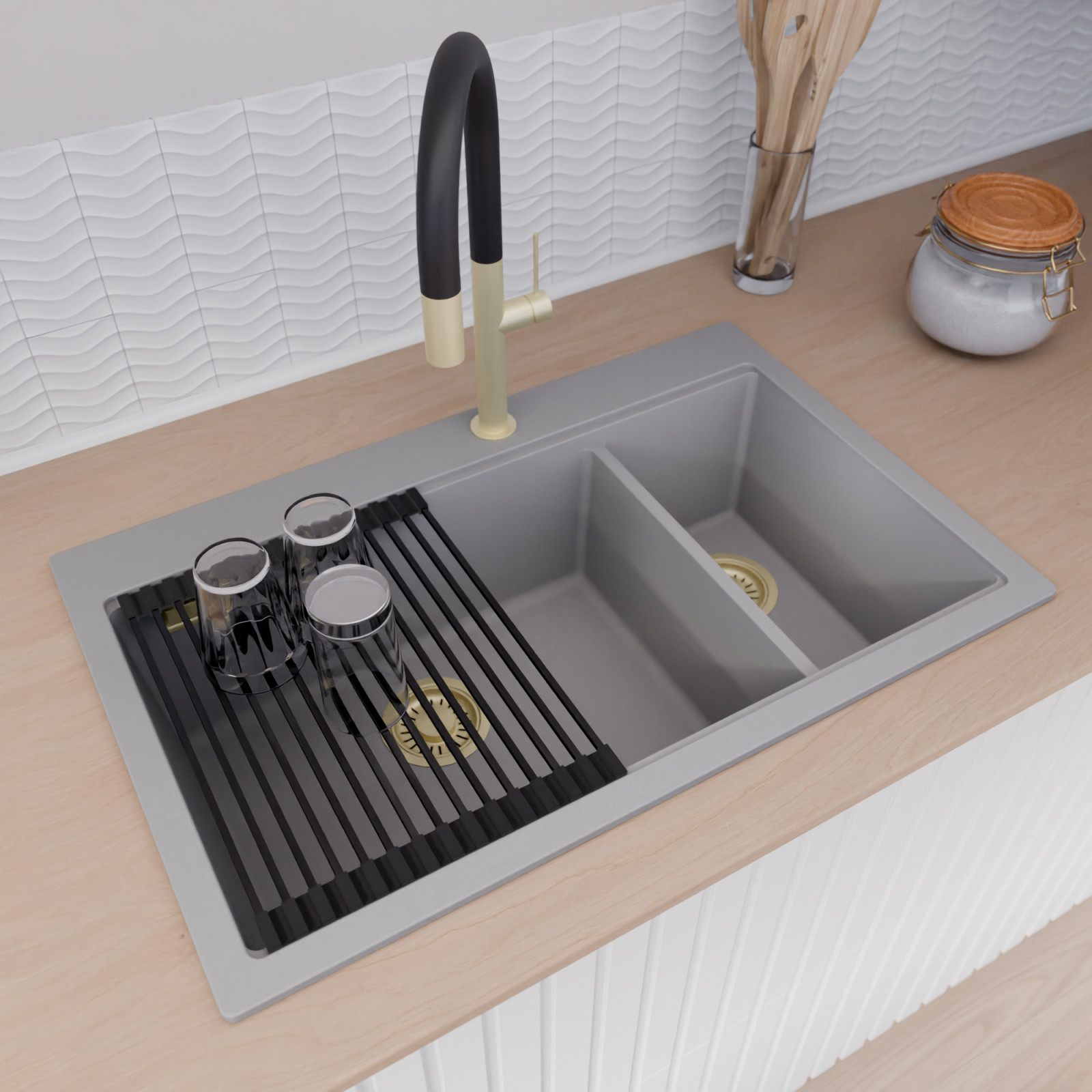 A mosogató prémium minőségű gránit kompozitból készült. Letisztult megjelenése mellett rendkívül praktikus, így bármilyen stílusú konyhába harmonikusan illeszkedik. A strapabíró gránit anyag hosszú távon is megbízható használatot garantál.