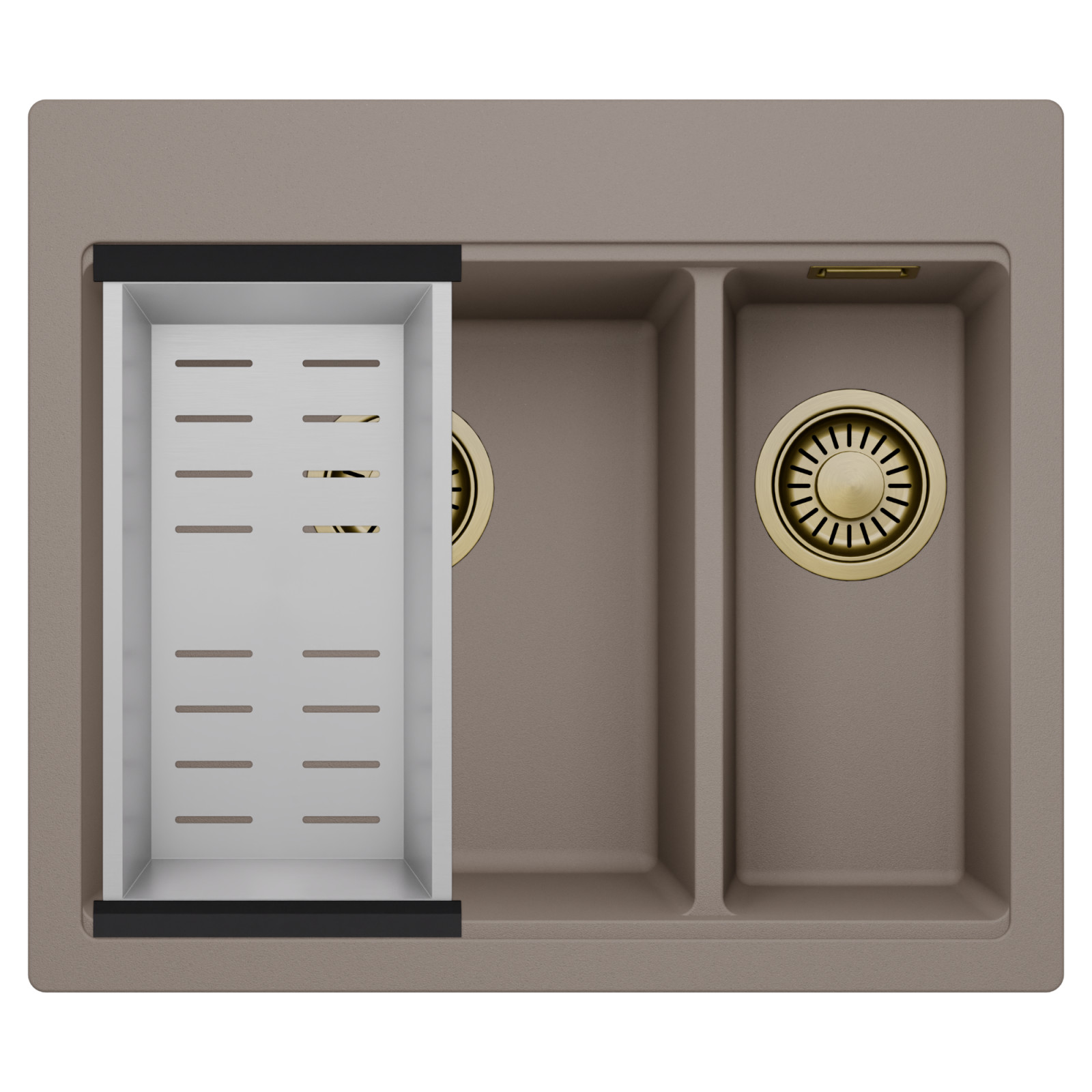 HD Aspen Tortora 58 Kétmedencés mosogatótálca szett, csepegtetőkosárral, tortora