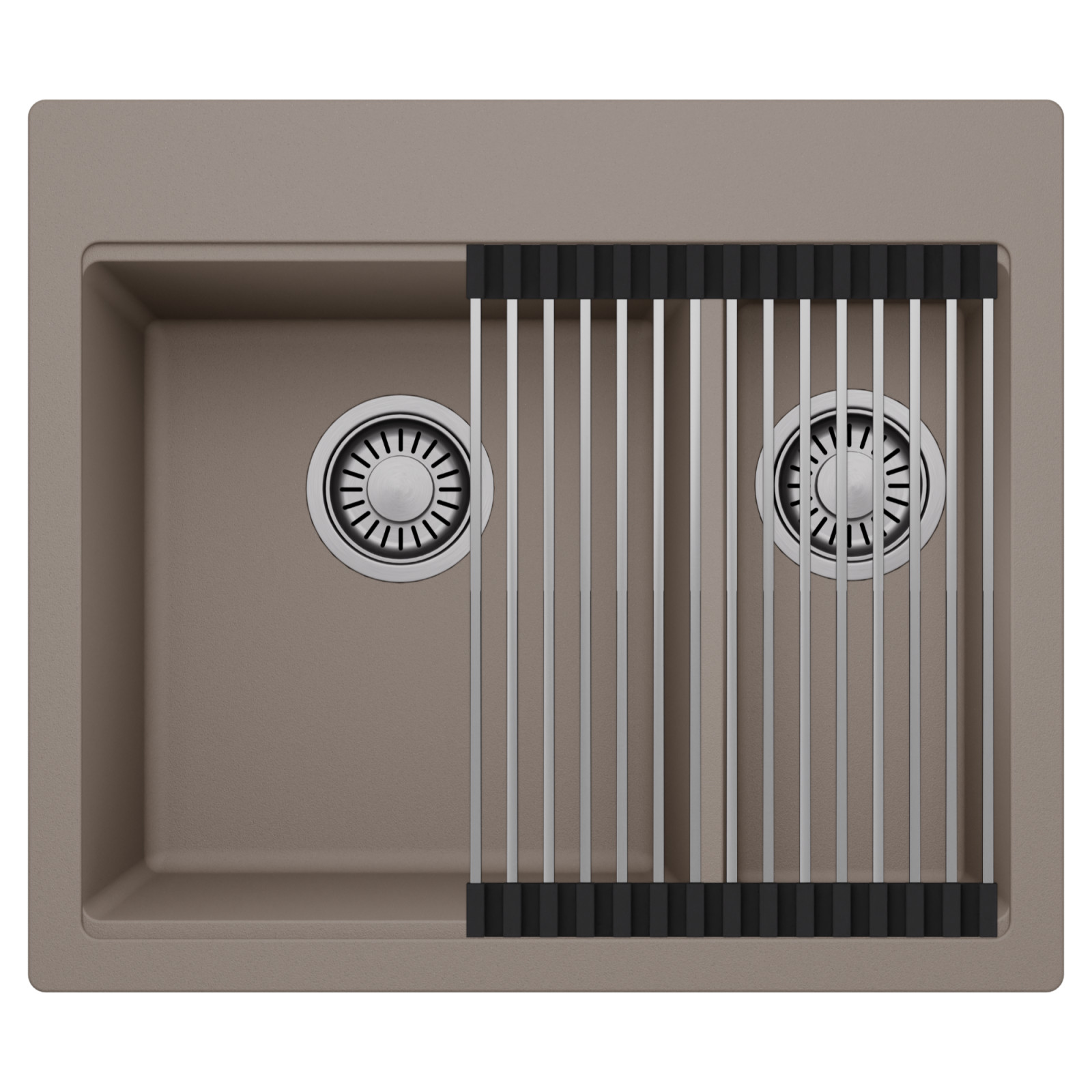 HD Aspen Tortora 58 Kétmedencés mosogatótálca szett, csepegtetőráccsal, tortora