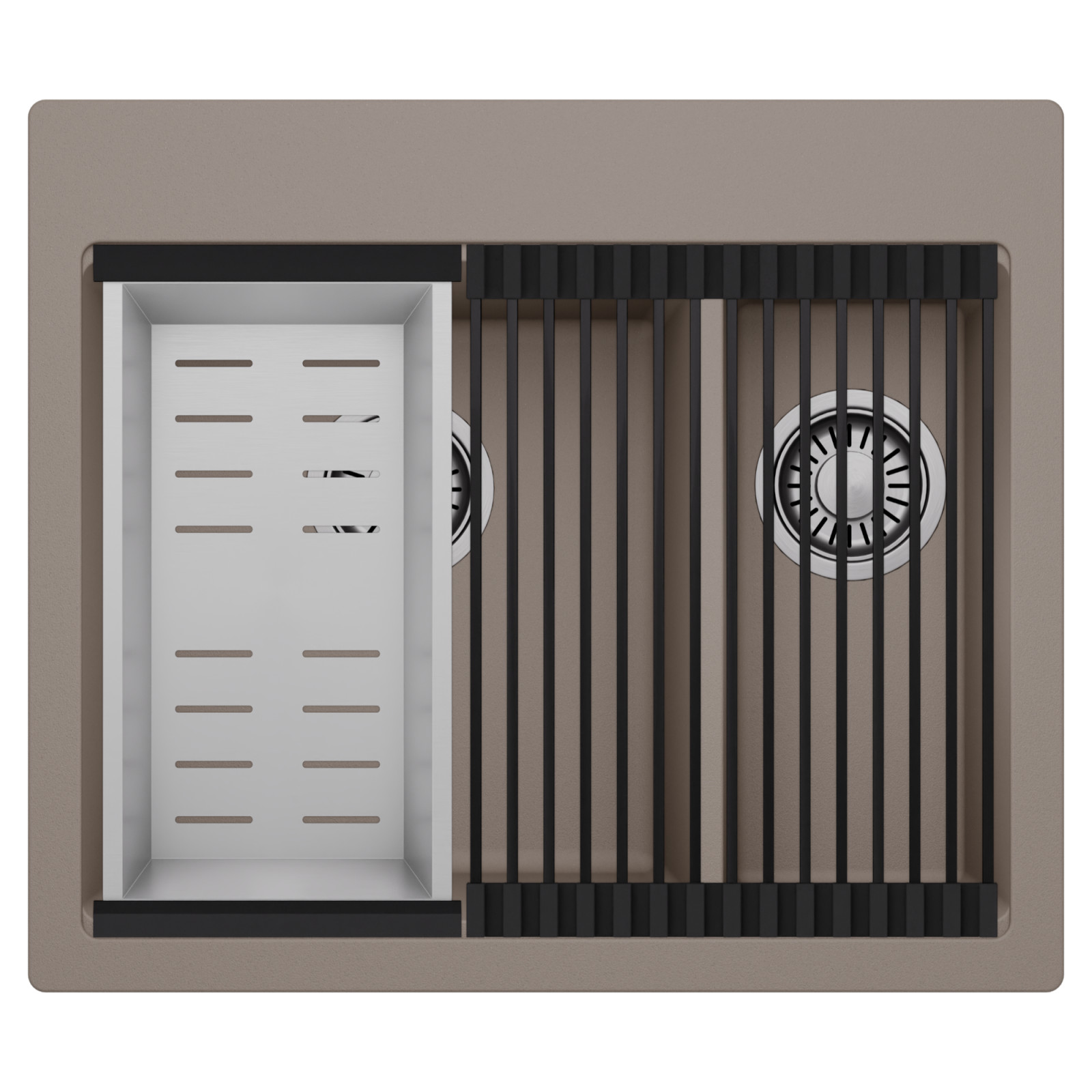 HD Aspen Tortora 58 Kétmedencés mosogatótálca szett, csepegtetőráccsal és kosárral, tortora