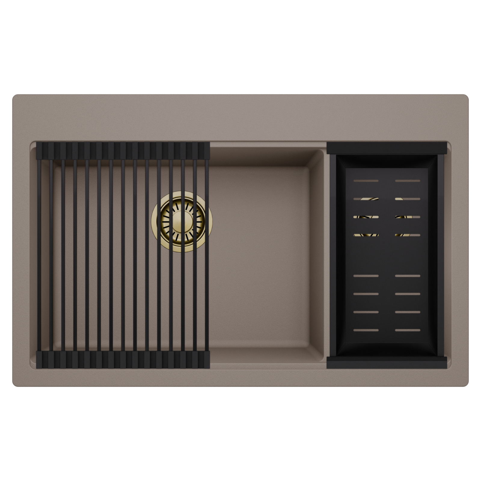 HD Aspen Tortora 78 Kétmedencés mosogatótálca szett, csepegtetőráccsal és kosárral, tortora