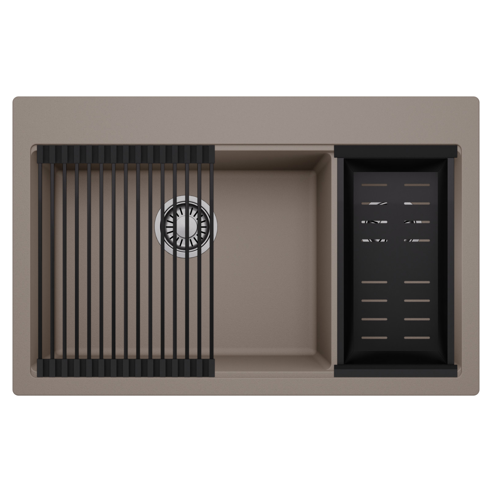 HD Aspen Tortora 78 Kétmedencés mosogatótálca szett, csepegtetőráccsal és kosárral, tortora
