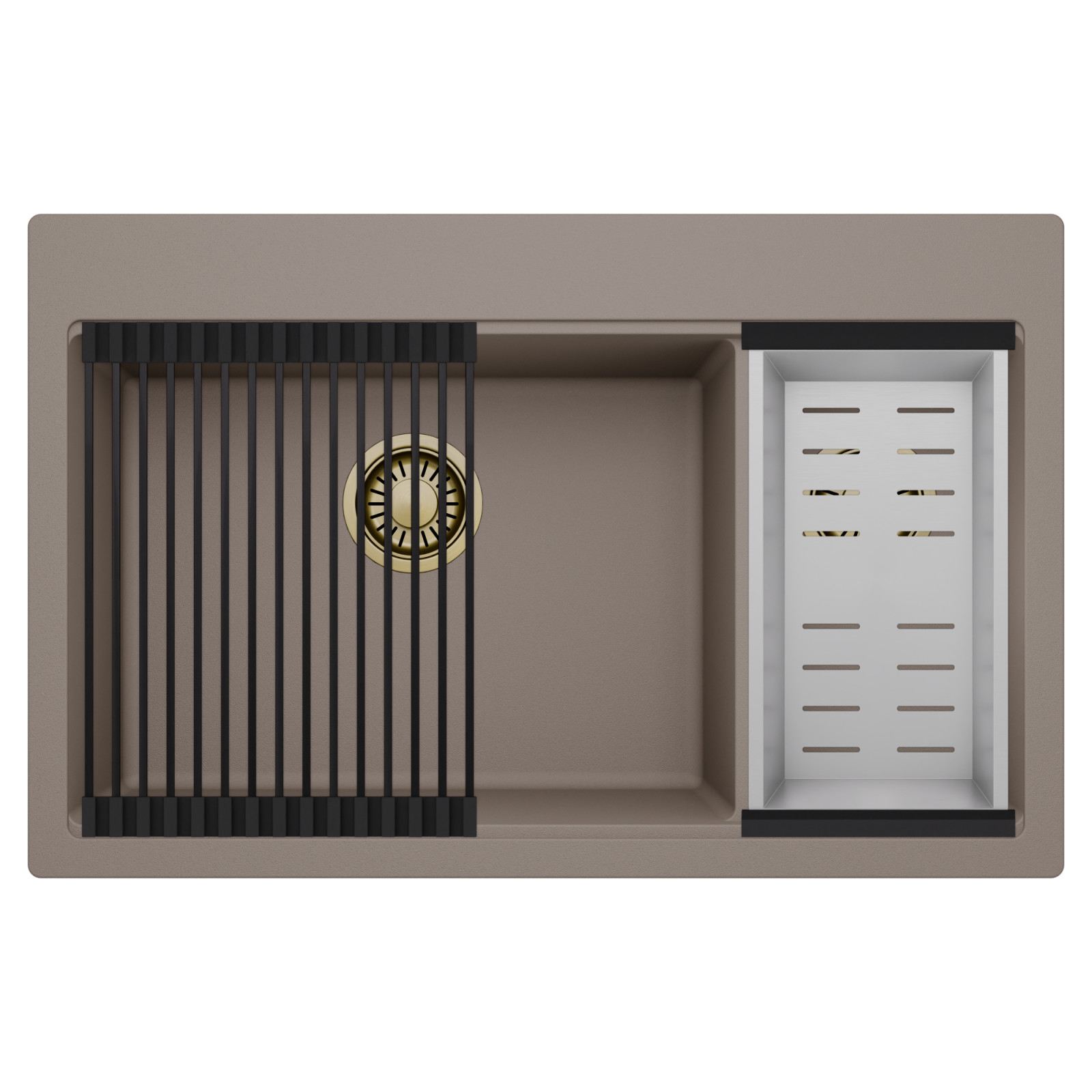 HD Aspen Tortora 78 Kétmedencés mosogatótálca szett, csepegtetőráccsal és kosárral, tortora