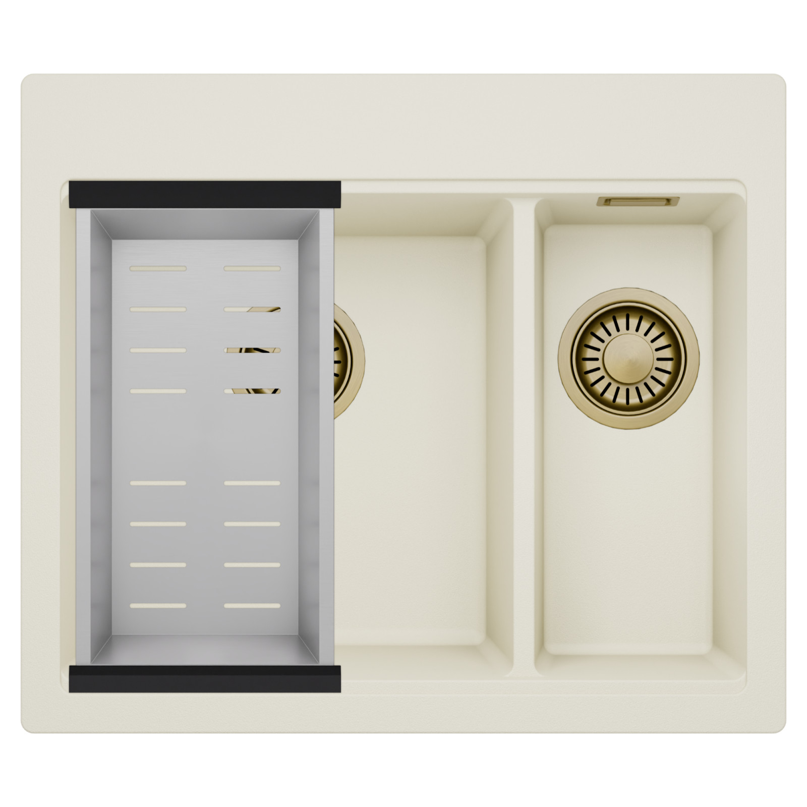 HD Aspen White 58 Kétmedencés mosogatótálca szett, csepegtetőkosárral, tört fehér