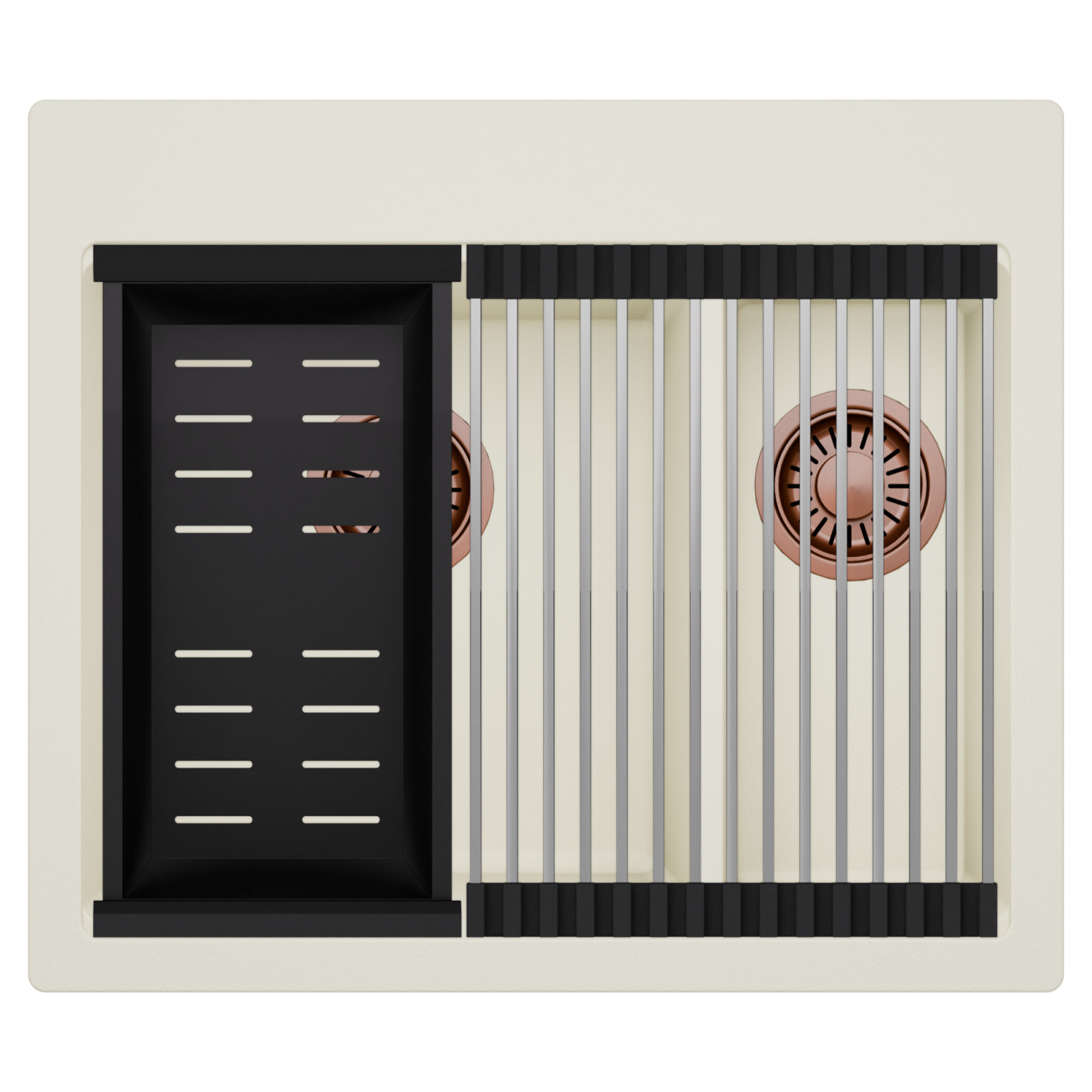 HD Aspen White 58 Kétmedencés mosogatótálca szett, csepegtetőráccsal és kosárral, tört fehér