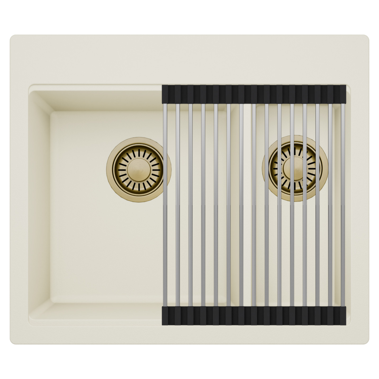 HD Aspen White 58 Kétmedencés mosogatótálca szett, csepegtetőráccsal, tört fehér