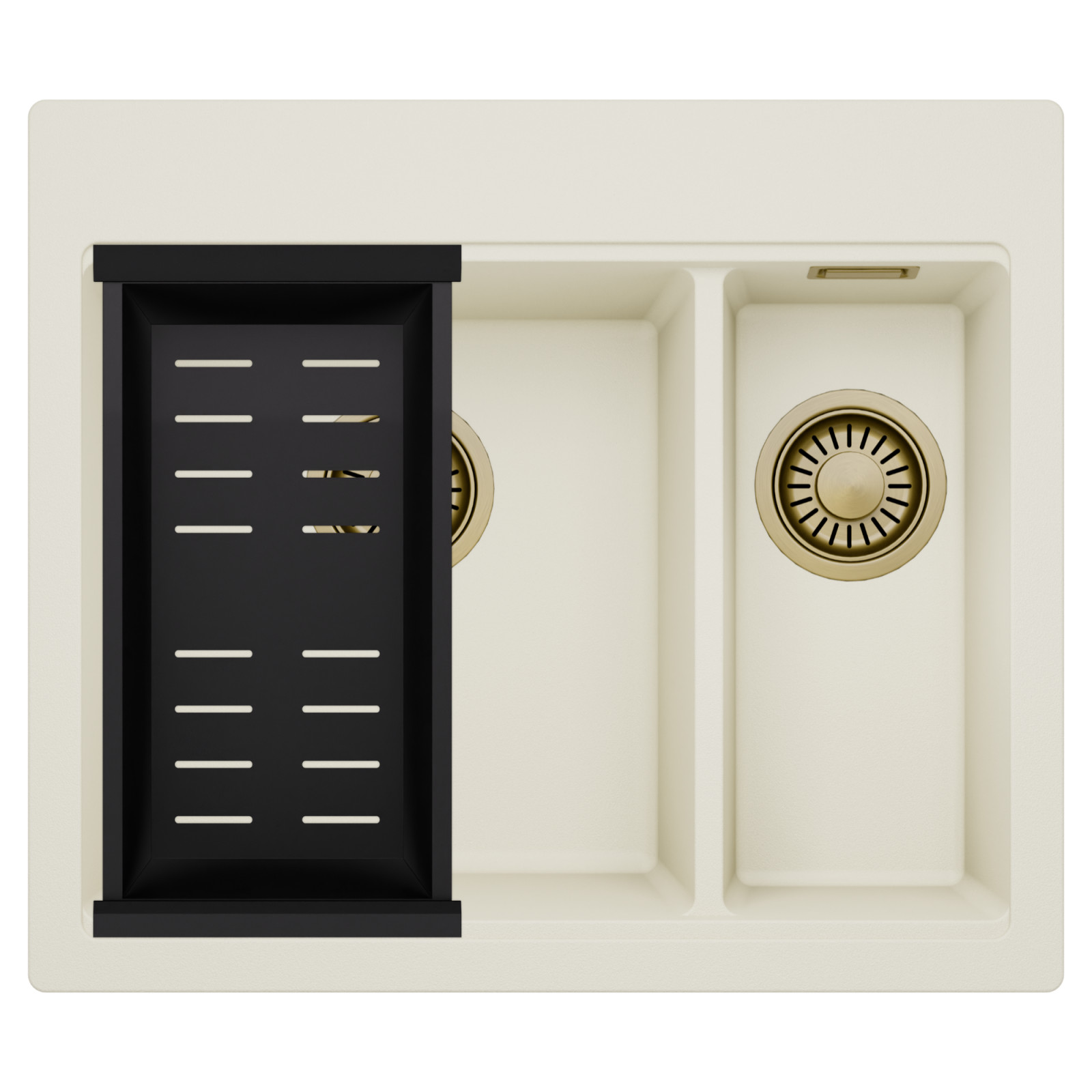 HD Aspen White 58 Kétmedencés mosogatótálca szett, csepegtetőkosárral, tört fehér