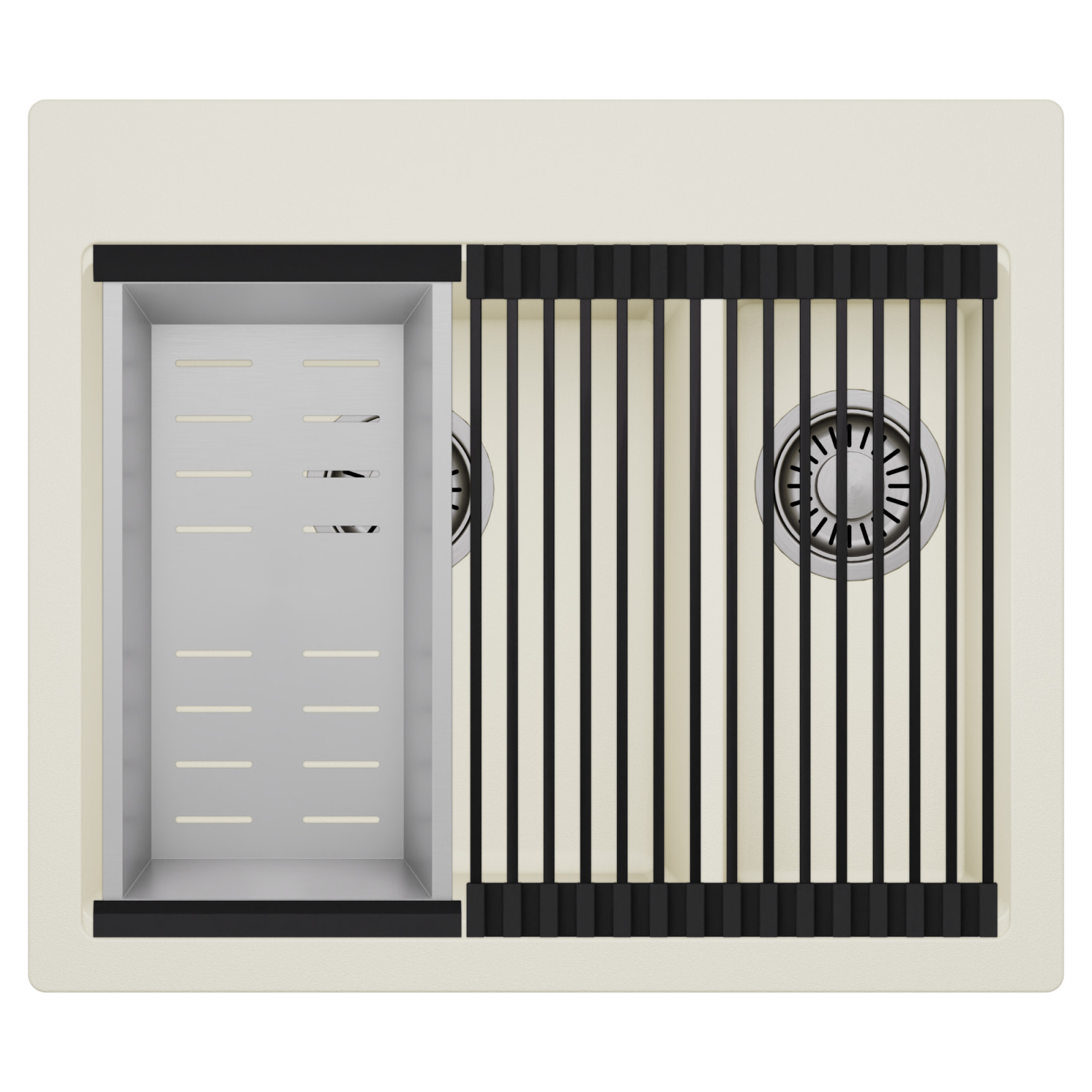 HD Aspen White 58 Kétmedencés mosogatótálca szett, csepegtetőráccsal és kosárral, tört fehér