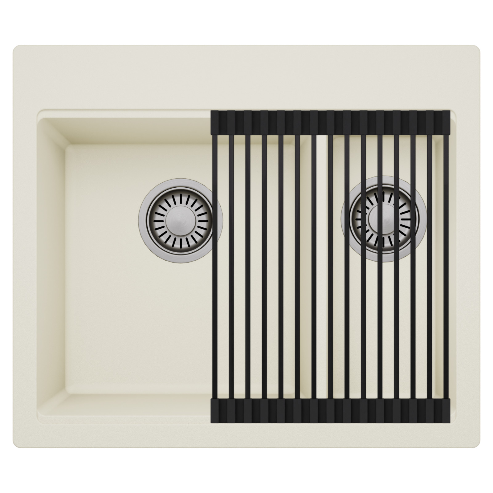 HD Aspen White 58 Kétmedencés mosogatótálca szett, csepegtetőráccsal, tört fehér