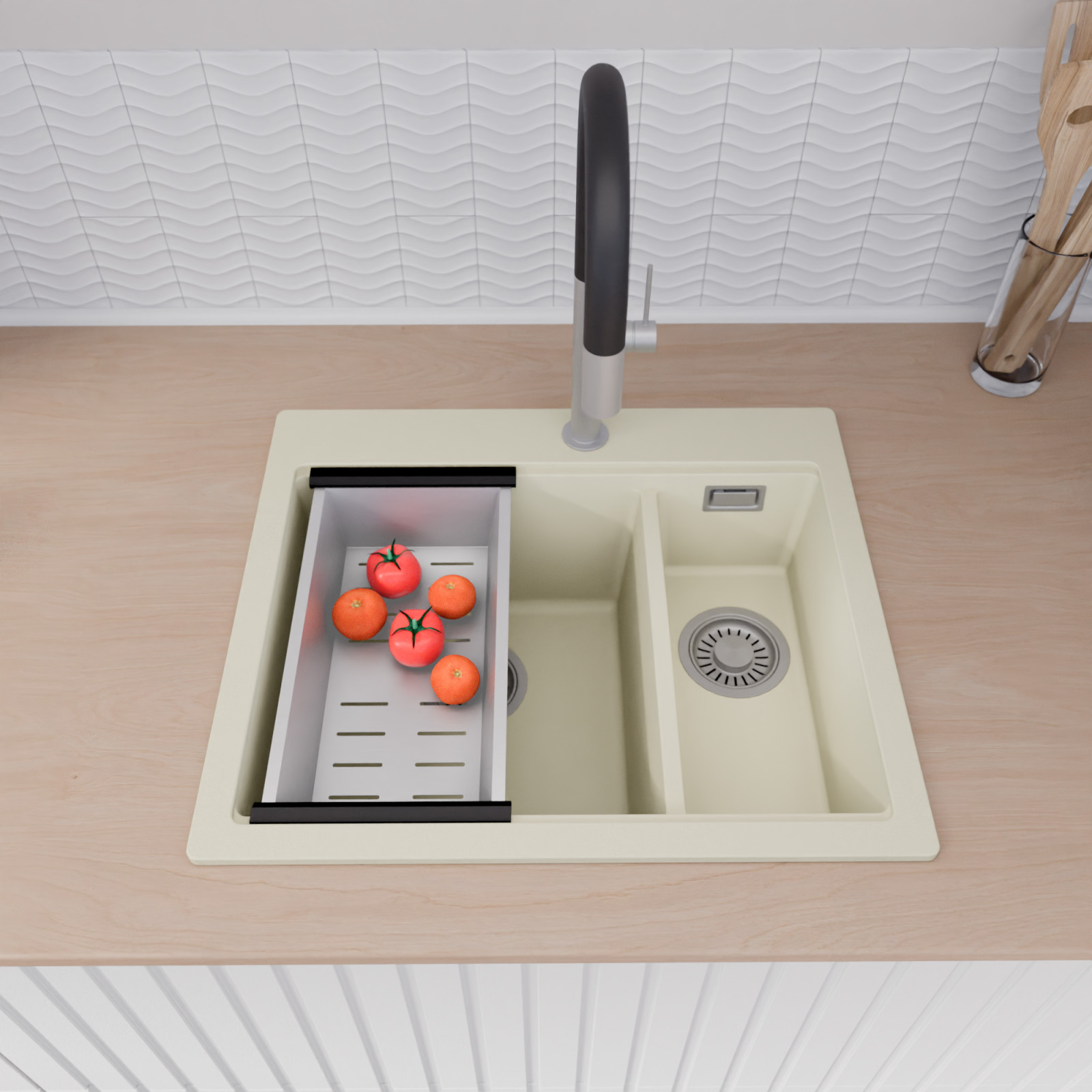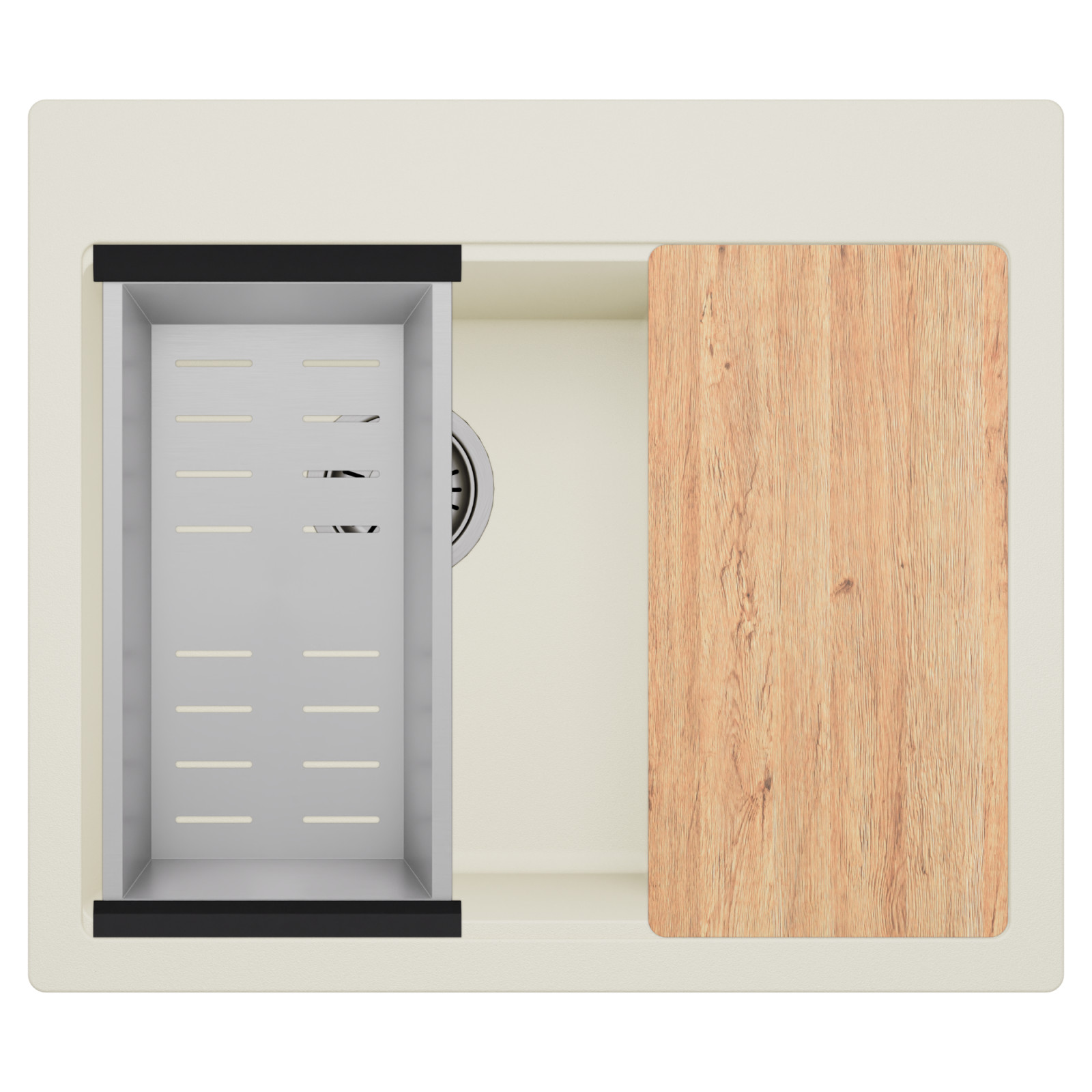 HD Aspen White 58 Kétmedencés mosogatótálca szett, vágódeszkával és csepegtetőkosárral, tört fehér