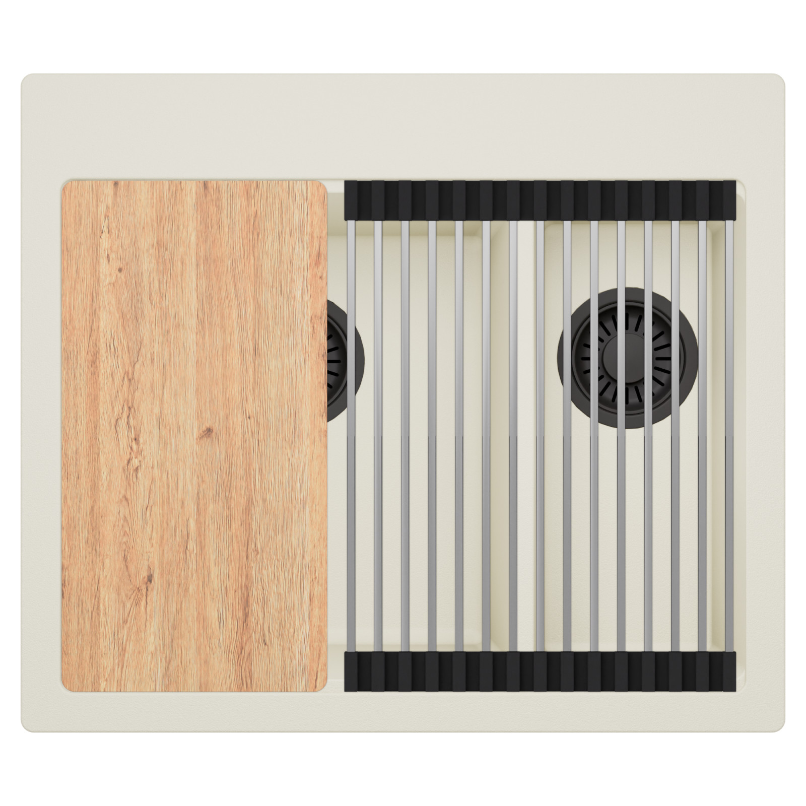 HD Aspen White 58 Kétmedencés mosogatótálca szett, vágódeszkával és csepegtetőráccsal, tört fehér