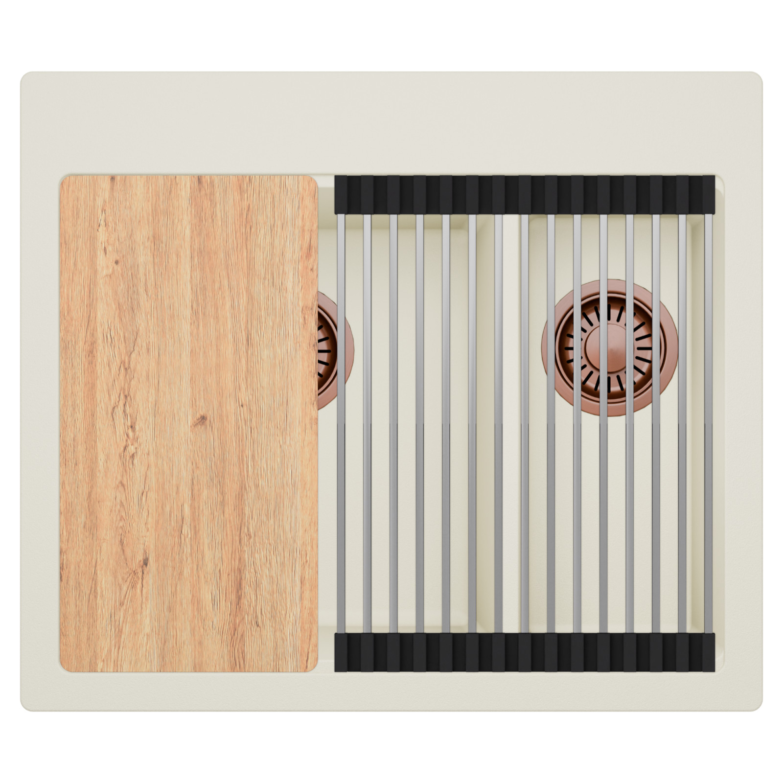 HD Aspen White 58 Kétmedencés mosogatótálca szett, vágódeszkával és csepegtetőráccsal, tört fehér