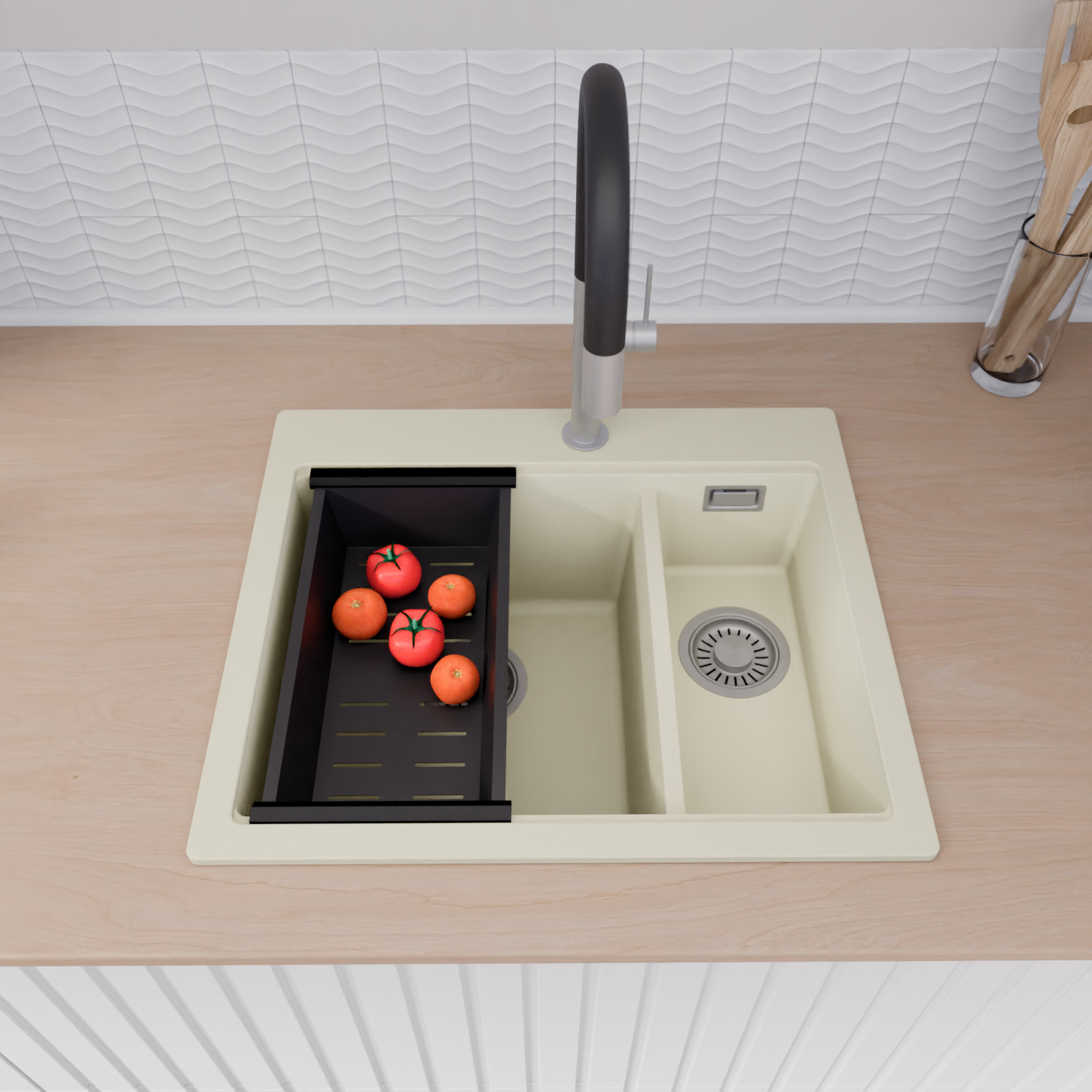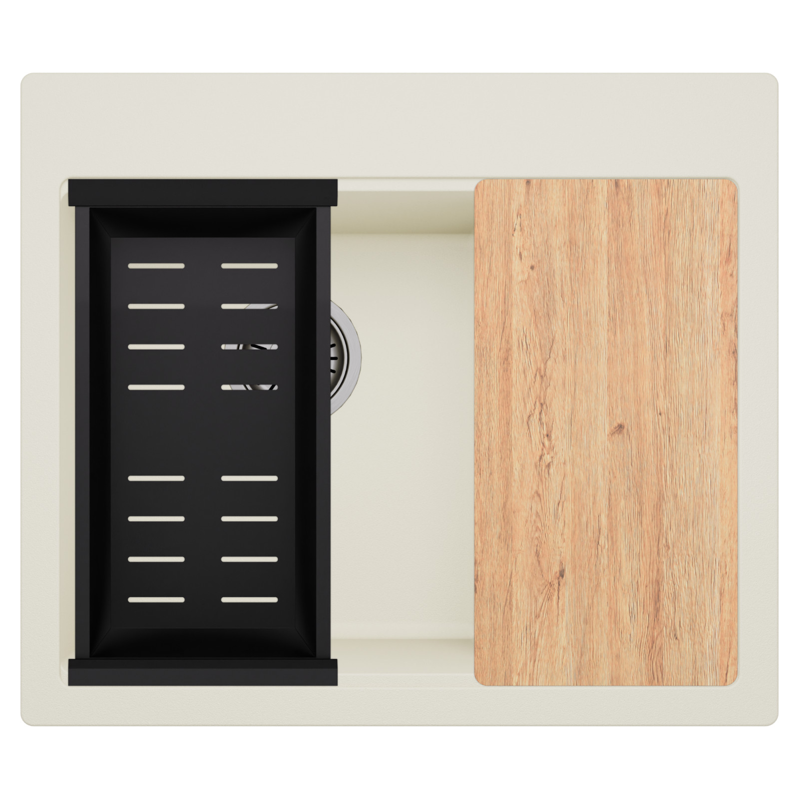 HD Aspen White 58 Kétmedencés mosogatótálca szett, vágódeszkával és csepegtetőkosárral, tört fehér