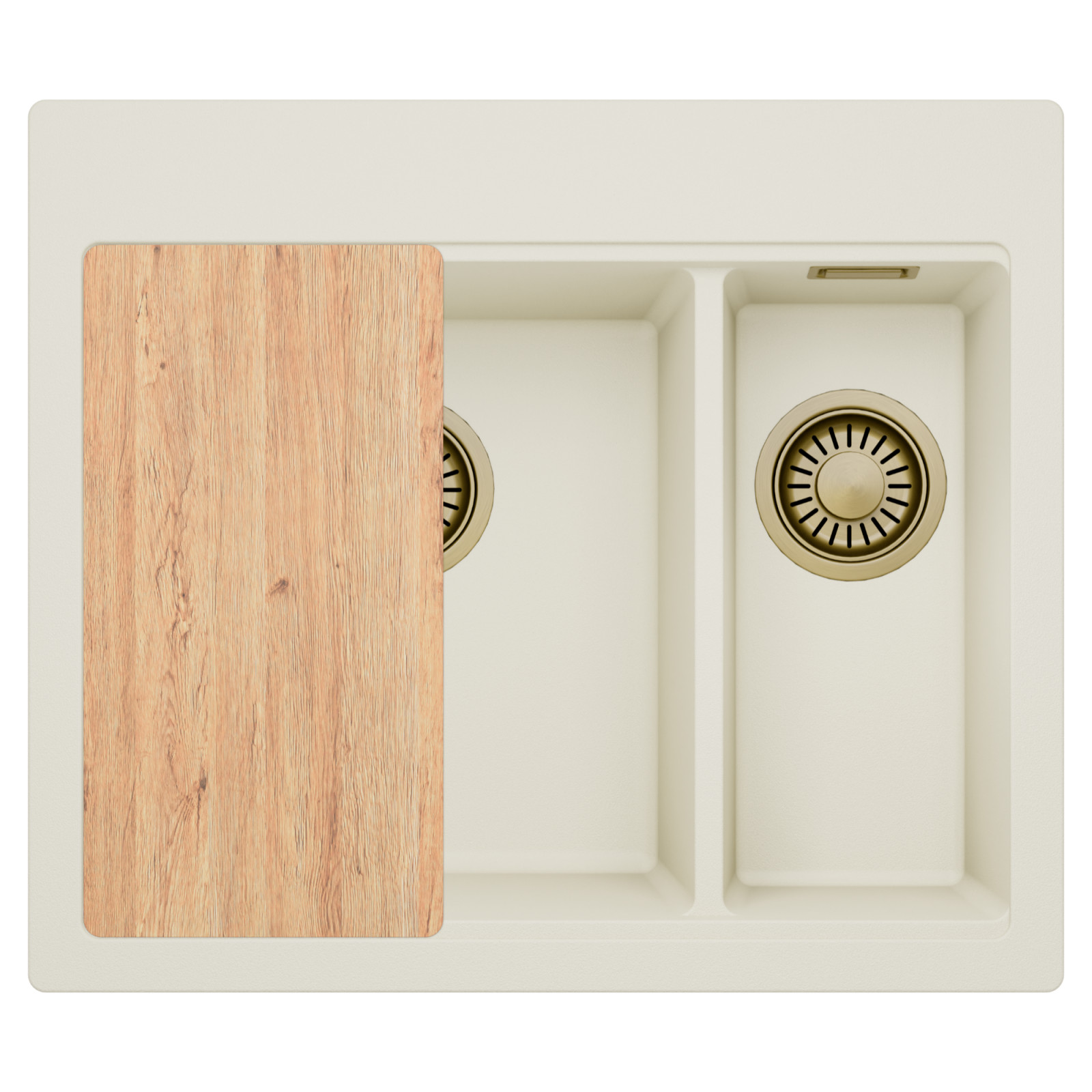 HD Aspen White 58 Kétmedencés mosogatótálca szett, vágódeszkával, tört fehér