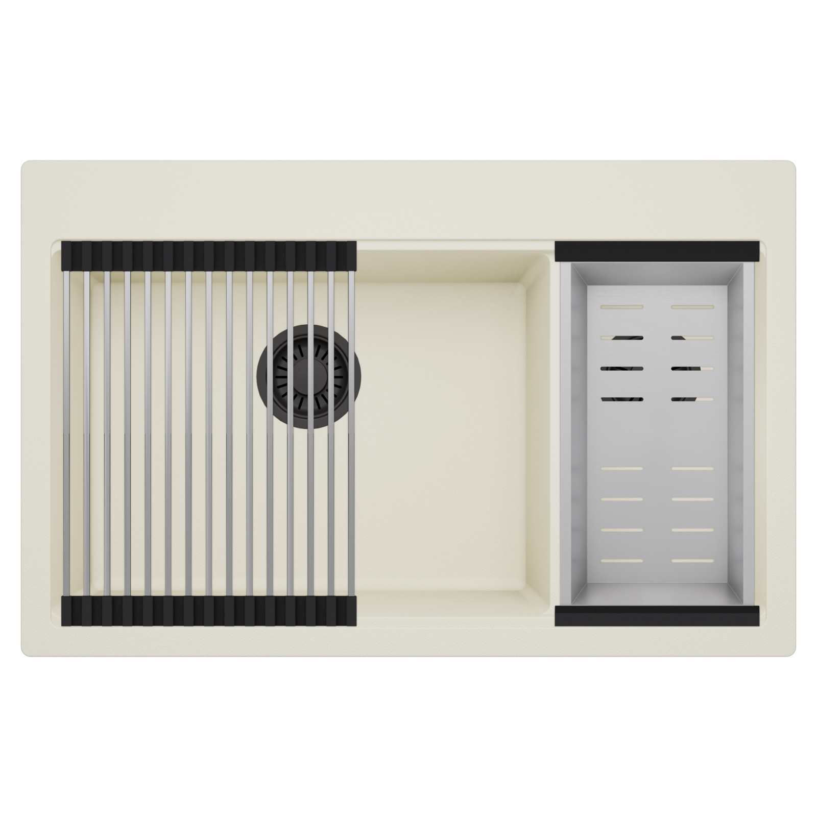 HD Aspen White 78 Kétmedencés mosogatótálca szett, csepegtetőráccsal és kosárral, tört fehér