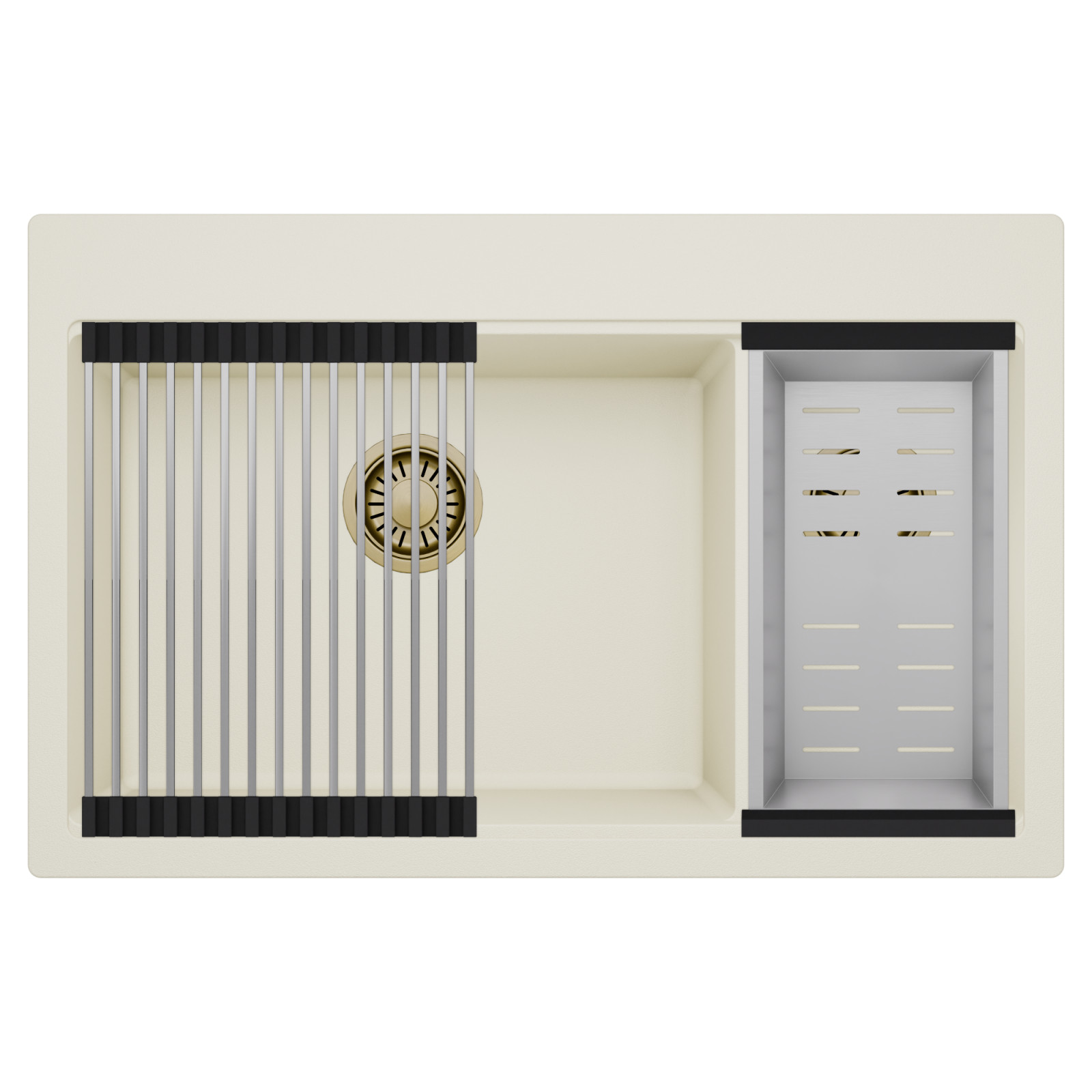HD Aspen White 78 Kétmedencés mosogatótálca szett, csepegtetőráccsal és kosárral, tört fehér
