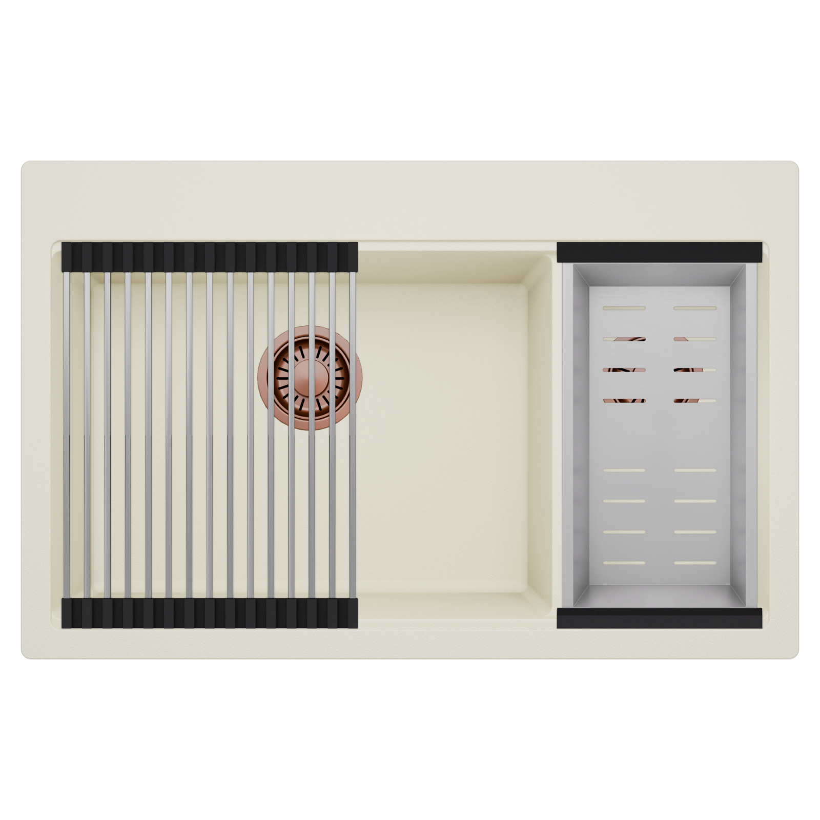 Mosogatónk magas természetes kőőrlemény-tartalmú gránit kompozitból készül, amely rendkívüli stabilitást és tartósságot biztosít. Az anyag ellenáll a magas hőmérsékletnek, a hirtelen hőingadozásoknak, valamint az ütéseknek és karcolásoknak is. Sima, zárt felülete könnyen tisztán tartható, ellenáll a foltosodásnak és az elszíneződéseknek, így hosszú éveken át megőrzi esztétikus megjelenését. Meggyőződésünk, hogy ezzel a gránit mosogatóval a mindennapi konyhai teendők kényelmesebbé és élvezetesebbé válnak.
