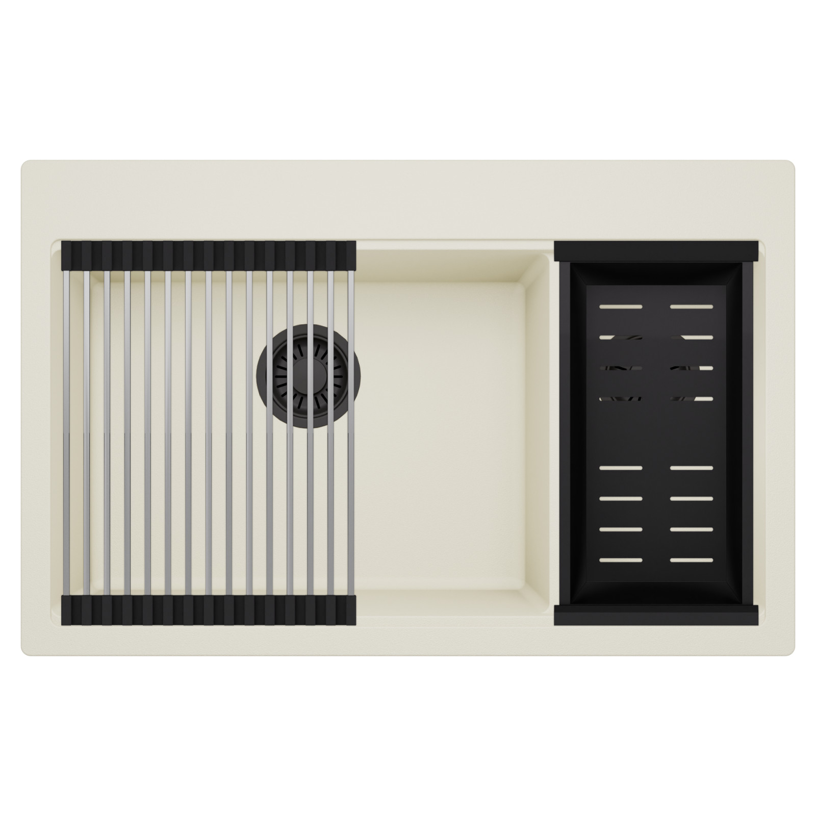 HD Aspen White 78 Kétmedencés mosogatótálca szett, csepegtetőráccsal és kosárral, tört fehér