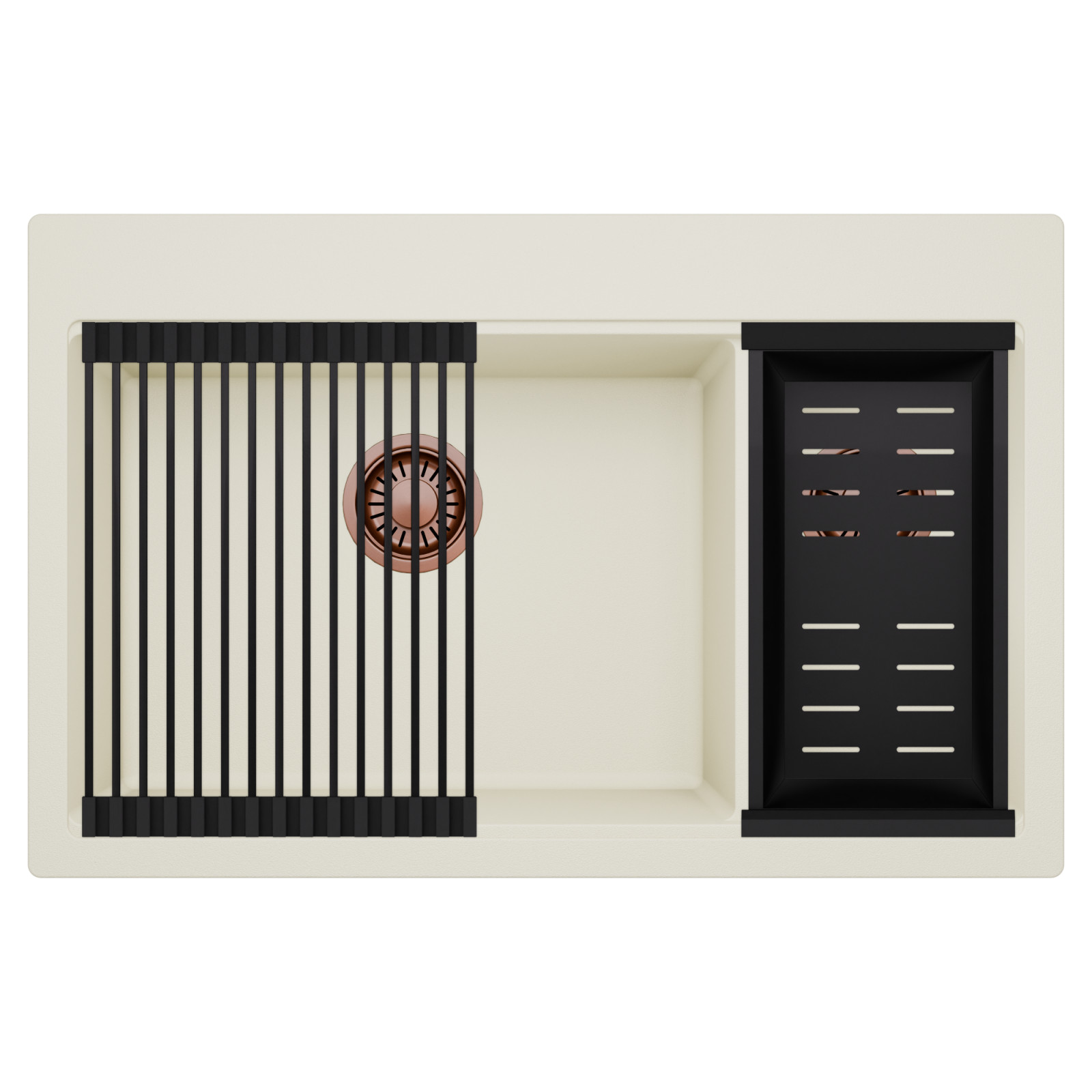 A mosogató prémium minőségű gránit kompozitból készült. Letisztult megjelenése mellett rendkívül praktikus, így bármilyen stílusú konyhába harmonikusan illeszkedik. A strapabíró gránit anyag hosszú távon is megbízható használatot garantál.