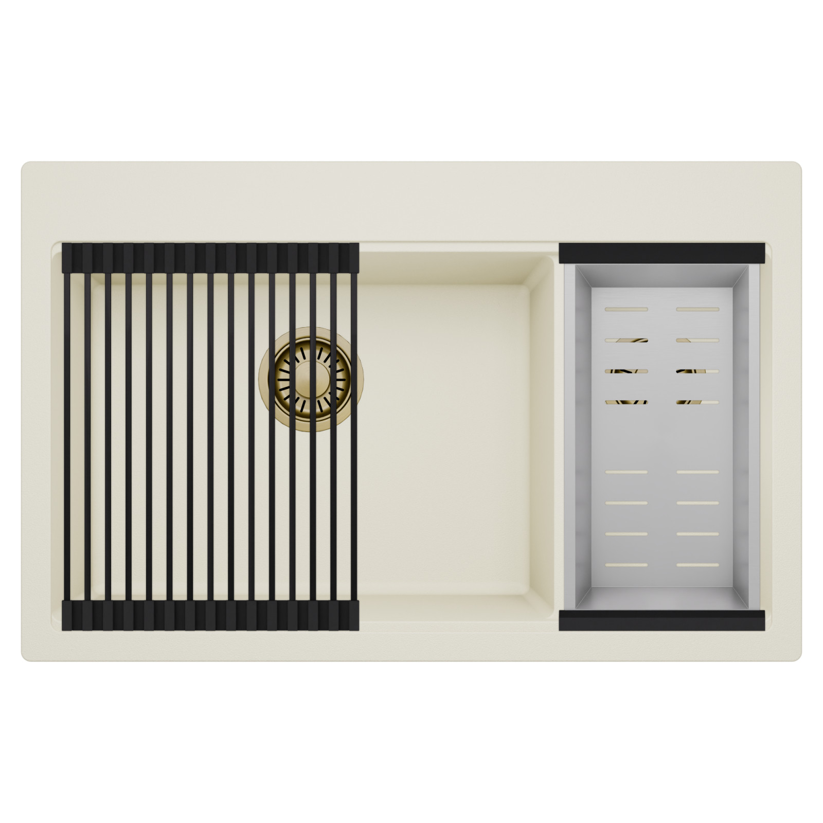HD Aspen White 78 Kétmedencés mosogatótálca szett, csepegtetőráccsal és kosárral, tört fehér