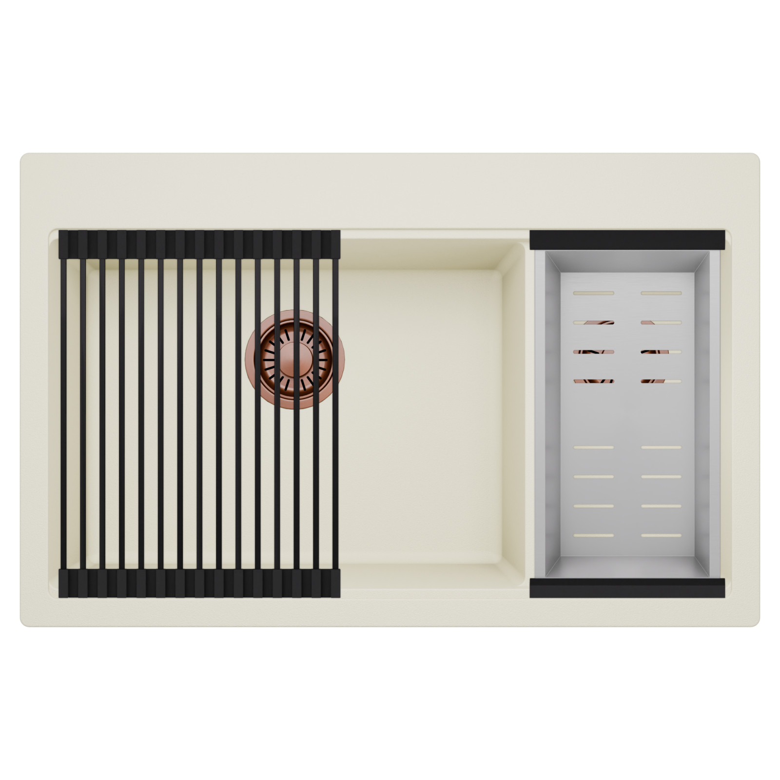 Mosogatónk magas természetes kőőrlemény-tartalmú gránit kompozitból készül, amely rendkívüli stabilitást és tartósságot biztosít. Az anyag ellenáll a magas hőmérsékletnek, a hirtelen hőingadozásoknak, valamint az ütéseknek és karcolásoknak is. Sima, zárt felülete könnyen tisztán tartható, ellenáll a foltosodásnak és az elszíneződéseknek, így hosszú éveken át megőrzi esztétikus megjelenését. Meggyőződésünk, hogy ezzel a gránit mosogatóval a mindennapi konyhai teendők kényelmesebbé és élvezetesebbé válnak.