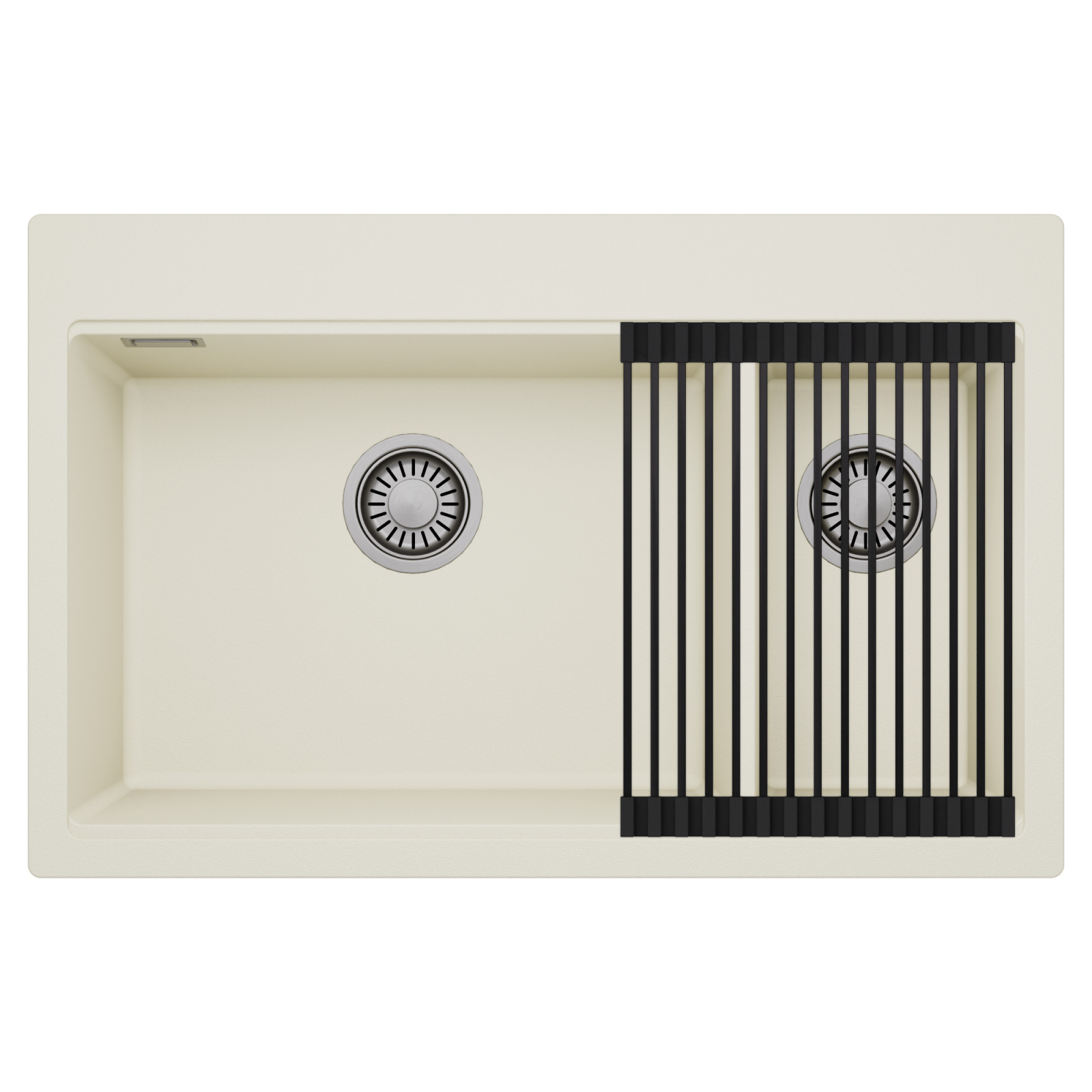HD Aspen White 78 Kétmedencés mosogatótálca szett, csepegtetőráccsal, tört fehér