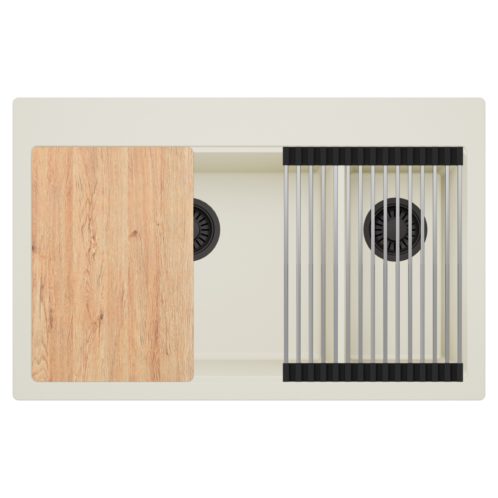 HD Aspen White 78 Kétmedencés mosogatótálca szett, vágódeszkával és csepegtetőráccsal, tört fehér