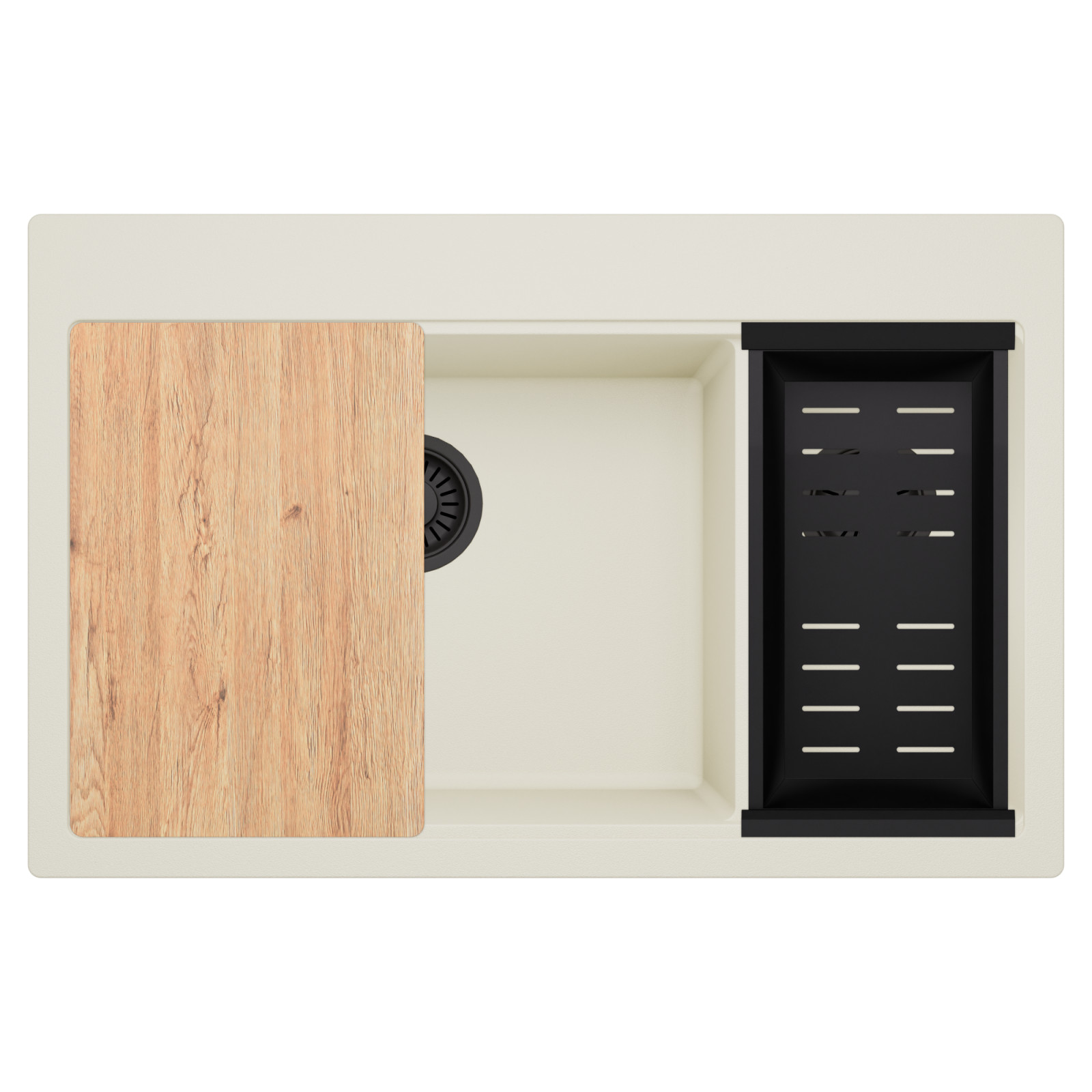 HD Aspen White 78 Kétmedencés mosogatótálca szett, vágódeszkával és csepegtetőkosárral, tört fehér