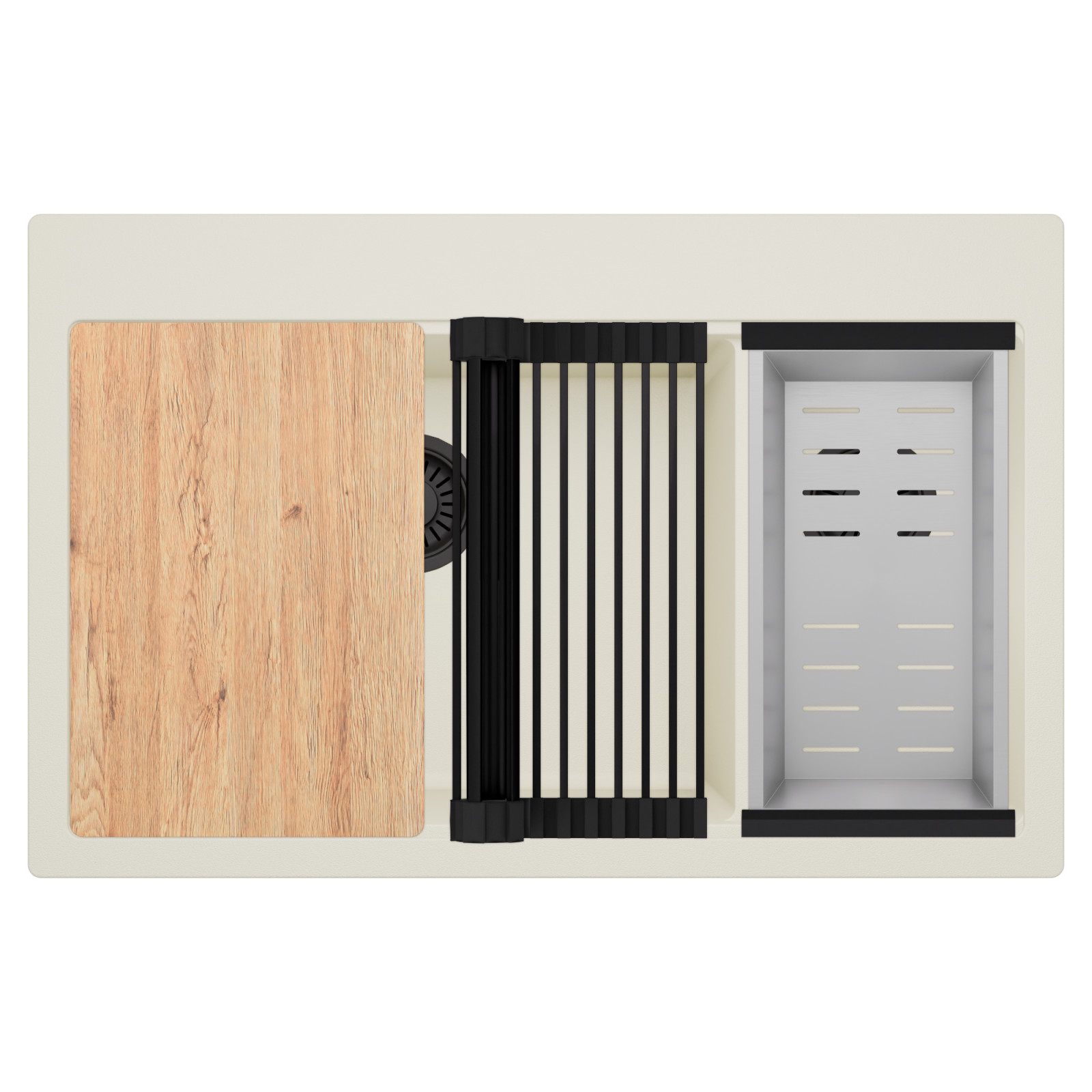 HD Aspen White 78 Kétmedencés mosogatótálca szett, vágódeszkával, csepegtetőráccsal és kosárral, tört fehér