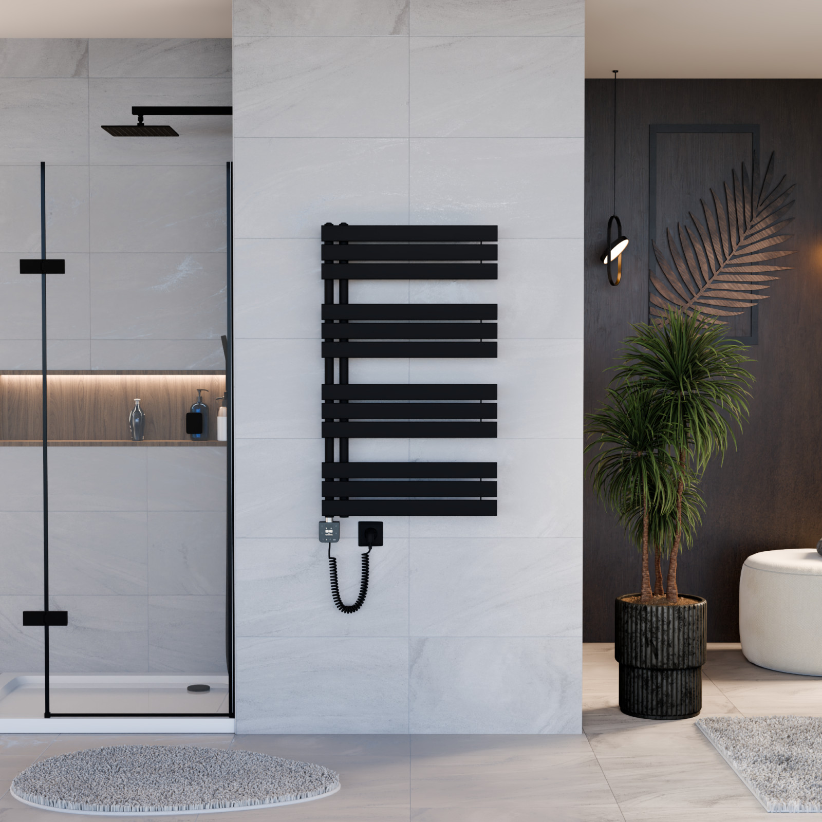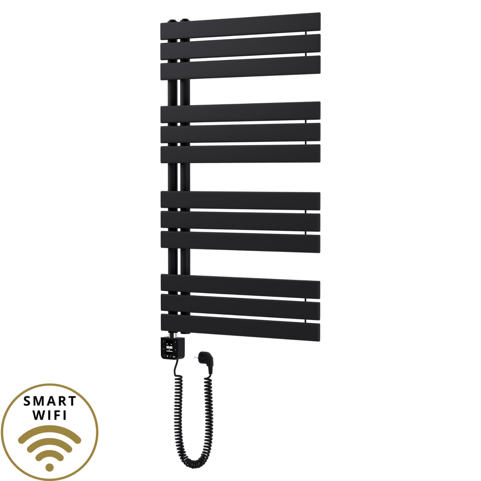HD Astoria Black 1000x600 mm smart elektromos design törölközőszárító radiátor 400W-os wifi-s fűtőpatronnal, smart funkcióval, matt fekete