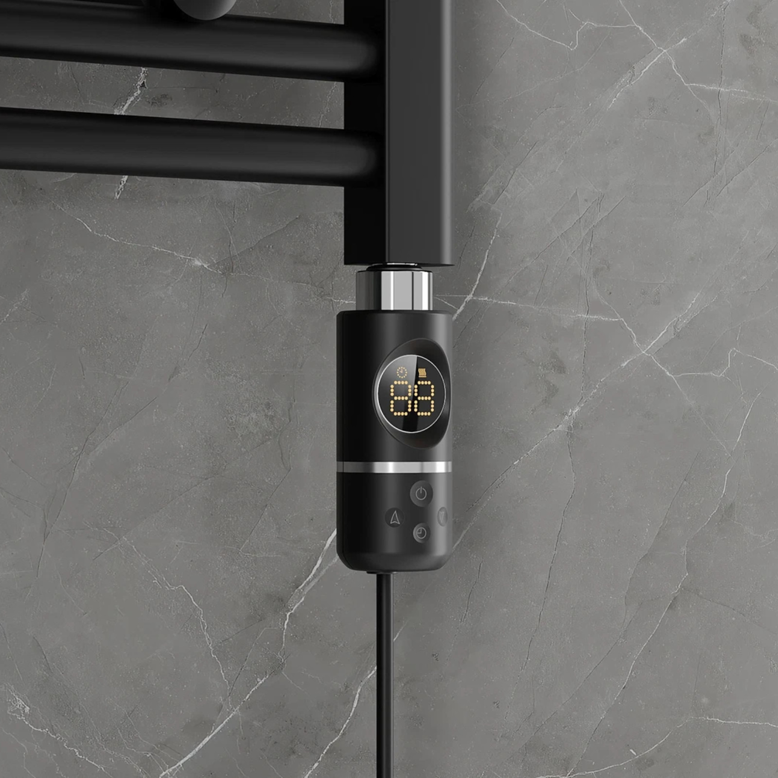 HD Astoria Black 1200x500 mm elektromos design törölközőszárító radiátor 400W-os fűtőpatronnal, matt fekete